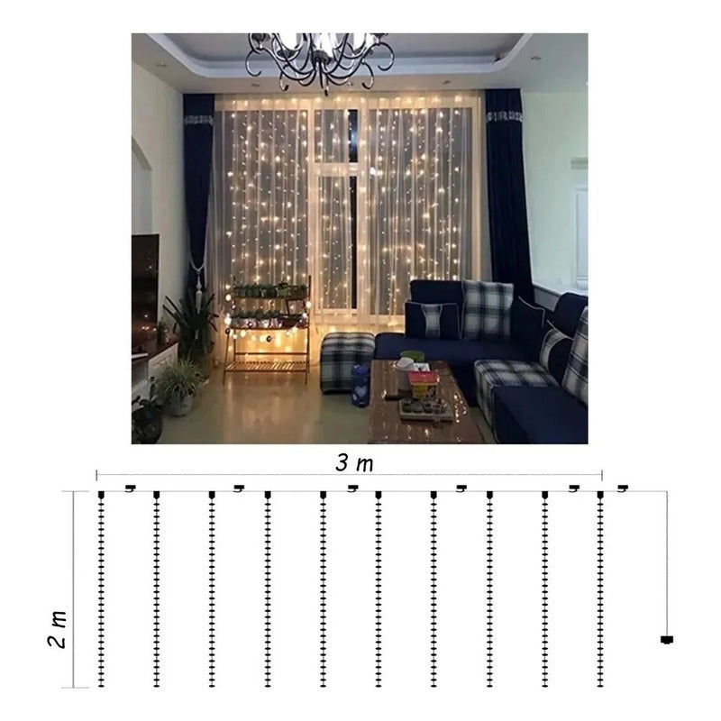 OKSHOP DESCRIPCIÓN DEL PRODUCTO La decoración ideal para esta navidad llegará a tu casa. Incluye enchufe para extensión de luces, y mando para control e intermitencia de luces. La conexión para extenderla es anti agua. NOTA: no incluye sonido CARACTERÍSTICAS DEL PRODUCTO - Luz Calida, Multicolor - Longitud: 3 metros - Altura: 2 metros - Cantidad de luces. 320 luces - Terminación: constante CONTENIDO DE LA COMPRA - Cortina de Luces tipo cascada OKSHOP