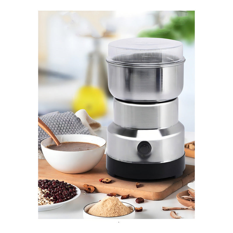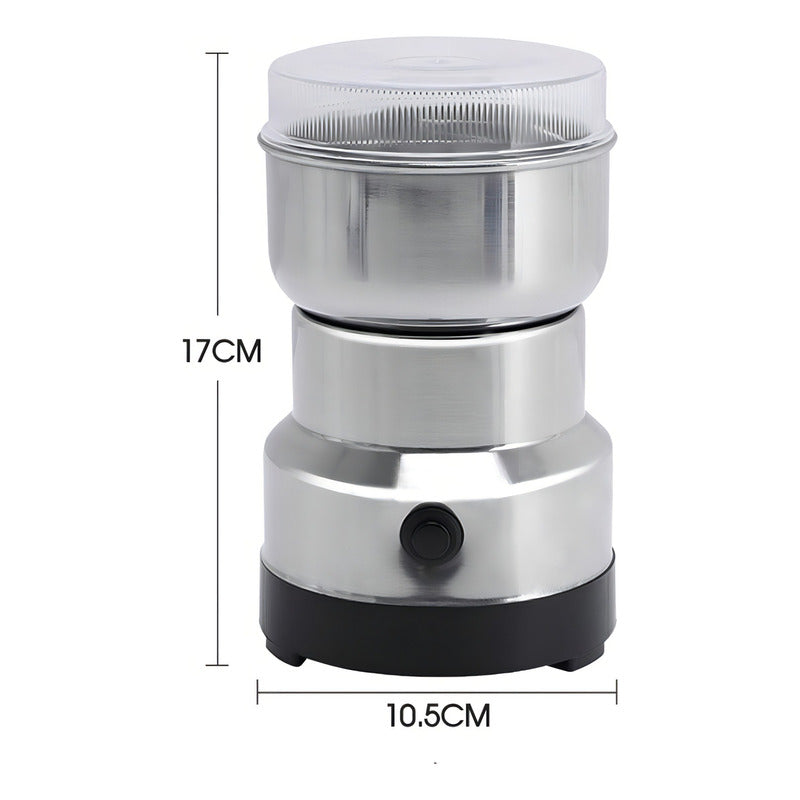 Molinillo De Cafe Electrico Molino Para Granos Electrico Color Gris DESCRIPCIÓN DEL PRODUCTO Este molinillo eléctrico es el complemento perfecto para tu cocina, permitiéndote moler tus granos para una preparación óptima. Es especialmente útil para moler granos de dureza moderada. CARACTERÍSTICAS DEL PRODUCTO -El recipiente es de acero -Capacidad del recipiente: 100 gr aproximado de semilla -Incluye un botón pulsador para encenderlo -Voltaje: 220-240 VAC -Potencia: 100 w- 200 w -Velocidad del motor: 14500 r.p.m -Dimensiones: 17 x 10.5 cm -Peso: 450 gr aproximado CONTENIDO DE LA COMPRA 01 Molinillo Eléctrico