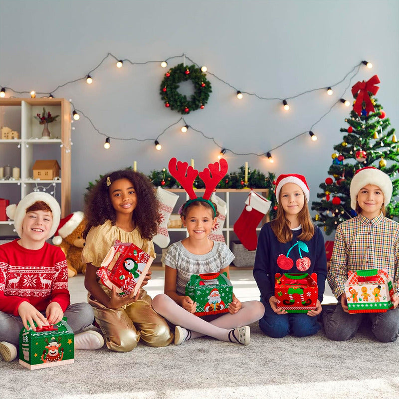 DESCRIPCION DEL PRODUCTO CAJAS DE REGALO NAVIDEÑOS Fabricado con cartón grueso, no tóxico, resistente y duradero para un uso cómodo. 12 diseños diferentes con elementos festivos están disponibles, como Papá Noel, alce, nieve, árbol de Navidad, oso, pingüino, trineo Y MAS Las cajas de galletas están empaquetadas en plano, se pueden juntar en 1-2 minutos. Estas cajas son ideales para regalar, empaquetar y decorar, perfectas para guardar galletas, dulces, cupcakes, chocolates, brownies, magdalenas y pequeños regalos. CONTENIDO DE LA COMPRA X1 CAJA DE REGALO NAVIDEÑO SOMOS OKSHOP