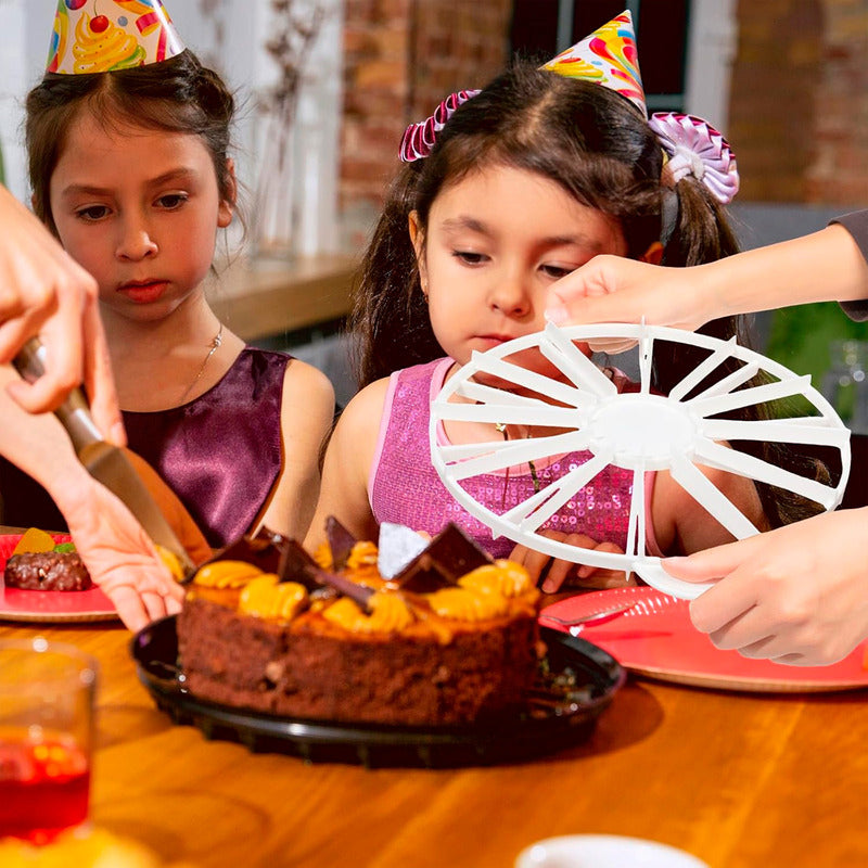 DESCRIPCION DEL PRODUCTO LA CORTADORA DE PASTELES La cortadora de pasteles redonda adopta un diseño de doble cara, presione suavemente la partición sobre el pastel o pastel y luego use un cuchillo para cortar a lo largo de la abolladura. Hay asas convenientes en ambos lados del divisor de pastel, que pueden dividir el pastel de manera rápida y precisa, y cortar el pastel o pastel en 10 o 12 piezas. Este divisor de pasteles está hecho de plástico apto para alimentos, liviano y duradero, fácil de almacenar y limpiar. Esta cortadora de pasteles es adecuada para pasteles, tartas, etc. Es muy adecuada para dividir todos los productos de panadería de manera uniforme. Es una herramienta de cocina indispensable y un gran regalo para familiares y amigos. CONTENIDO DE LA COMPRA X1 CORTADORA DE PASTELES