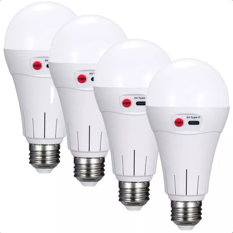 Pack X4 Ampolleta Led Tipo Bulbo Ampolletas Portables Inteligentes Camping Ampolletas Recargables Blanco 6.500k Usb Ampolleta Recargable Ampolleta E27 Ampolleta Usb 15w Okshop