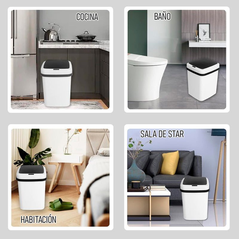 DESCRIPCION DEL PRODUCTO BASURERO INTELIGENTE Este bote de basura utiliza tecnología de sensor inteligente. Alimentado por 2 pilas AA. Cuando un objeto se acerca al bote de basura, la tapa de operación manos libres se abre en 0,3 segundos cuando está en el rango del sensor, y la tapa se cerrará automáticamente después de permanecer durante 5 segundos. Este cubo de basura de cocina es muy conveniente para limpiar el cubo de basura. Si no desea que toda la casa huela como no le gusta, debe asegurarse de que la tapa del cubo de basura del baño esté siempre cerrada, y un buen sellado lo hace posible. Este cubo de basura está diseñado con tecnología de reducción de velocidad, y el cubo de basura automático será muy silencioso al abrir y cerrar. Este bote de basura se aplica a muchas áreas, como baño, cocina, dormitorio, sala de estar, oficina, estudio, incluso en la cabina de tu hijo, etc. CONTENIDO DE LA COMPRA X1 BASURERO INTELIGENTE