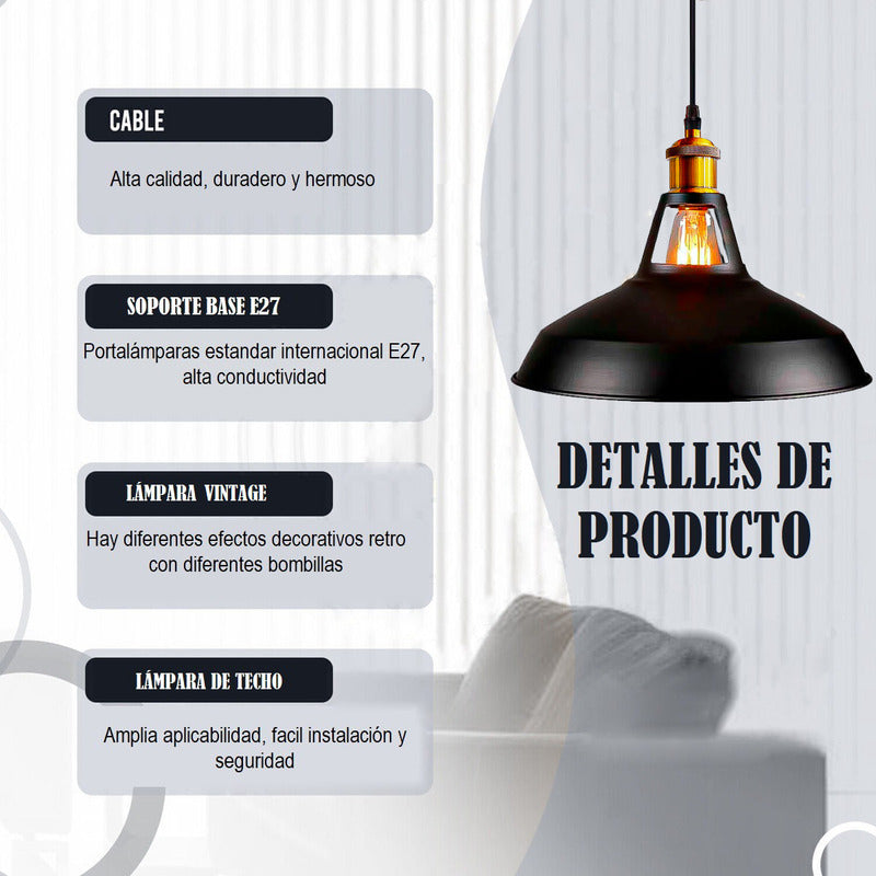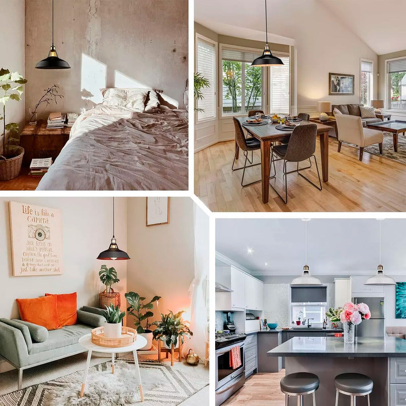 DESCRIPCION DEL PRODUCTO LAMPARA DE TECHO COLGANTE Diseño simple, forma minimalista, efecto artístico de iluminación único, creatividad ilimitada. Se puede integrar bien en el estilo del hogar, y la buena dispersión de luz revela los fragmentos de luz y sombra, que son sutiles y cálidos. Materiales seleccionados de alta calidad, pintura para hornear a alta temperatura, elegante y generosa, a todo color, textura clara, moldeo por compresión controlado por computadora, pintado a mano, no se decolora, fácil de limpiar. La pantalla colgante industrial es adecuada para cualquier bombilla incandescente o LED con base E27 estándar (bombilla no incluida), fácil instalación, luz uniforme, foco suave, bajo consumo de energía, bajo consumo de energía, menos generación de calor, ahorro de energía. Iluminación combinada con estilo minimalista retro, decora perfectamente la sala de estar, comedor, cocina, comedor, lavandería, pasillo, cafetería, sótano, pasillo, escalera, bar, club, biblioteca, oficina, entrada, dormitorio, sala de lectura. CONTENIDO DE LA COMPRA X1 LAMPARA DE TECHO COLGANTE