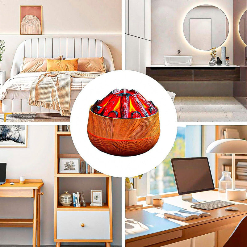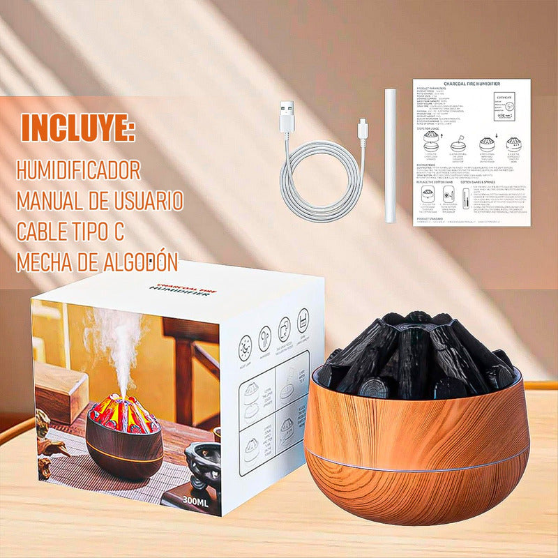 DESCRIPCION DEL PRODUCTO HUMIDIFICADOR DISEÑO FUEGO DE CARBON Diseñado con un exterior de carbón realista, simulando la calidez de un fuego ardiente, añadiendo un toque de calidez y ambiente a tu habitación u oficina. Este elegante humidificador elevará la decoración de tu hogar mientras mantiene un nivel de humedad adecuado Hay dos modos de iluminación del humidificador de llama para proporcionar una atmósfera personalizable para la relajación o el sueño. El modo de brillo continuo crea un ambiente constante, mientras que el modo de luz de respiración simula un efecto pulsante calmante para añadir una sensación de serenidad a tu espacio Con una gran capacidad de 10.1 fl oz, este humidificador de aire USB es realmente pequeño y ahorra espacio, lo que permite su uso en espacios pequeños como apartamentos, oficinas o habitaciones de hotel. Los modos de pulverización continua e intermitente están disponibles, puede funcionar continuamente durante 4 horas o intermitentemente durante 8 horas El difusor de aceites esenciales puede difundir rápidamente las moléculas en el aire para una buena humidificación. Agregue unas gotas de aceite esencial para la fragancia del aire. Dispositivo de reducción de ruido atomizador incorporado, el sonido de trabajo no es más de 35 decibelios. No afectará tu descanso y sueño Este difusor portátil funciona con una conexión USB, lo que elimina la necesidad de una fuente de alimentación separada. Hecho de ABS/PP de alta calidad, que está construido para durar mucho tiempo. Solo con dos botones en la máquina para que la operación sea lo suficientemente simple y más conveniente CONTENIDO DE LA COMPRA X1 HUMIDIFICADOR DISEÑO FUEGO DE CARBON
