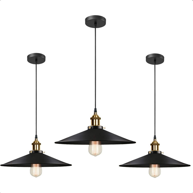 Pack X3 Lamparas De Techo Lampara Colgante Lampara Techo E27 Estructura Negro