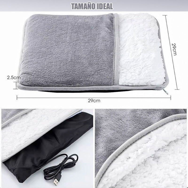 DESCRIPCION DEL PRODUCTO CALENTADOR DE PIES ELECTRICO Nuestras almohadillas calentadoras de pies están diseñadas con materiales suaves de primera calidad con una textura lujosa, lo que las hace para proporcionar a tus pies la comodidad que se merecen, ya sea que estés relajándote en interiores o desafiando el exterior. Mantente caliente y cómodo durante los fríos meses de invierno con este accesorio imprescindible Con un forro interior desmontable y una funda lavable a máquina, mantener tu almohadilla calentadora de pies nunca ha sido tan fácil. Simplemente lavar a mano o meter en la máquina para un mantenimiento sin complicaciones y una experiencia consistentemente fresca y limpia Diseñado para ser ligero y fácil de llevar, nuestro calentador de pies es para usar en la oficina, en casa, en el automóvil o mientras disfrutas de actividades al aire libre. Su diseño compacto garantiza que puedas llevar calidez y comodidad donde quiera que vayas Práctica fuente de alimentación USB, equipado con funcionalidad de alimentación USB, este calentador de pies se puede conectar sin esfuerzo a bancos de energía o enchufes domésticos. Disfruta del calor instantáneo en cualquier momento y en cualquier lugar, y despídete de los pies fríos durante los inviernos fríos Solución de calefacción segura y versátil, funciona con una fuente de alimentación de bajo voltaje, nuestra almohadilla de calentamiento de pies es segura para su uso por adultos, personas mayores y niños por igual. Experimenta una calidez relajante sin preocupaciones de seguridad y disfruta de la tranquilidad mientras te mantienes cómodamente calentado CONTENIDO DE LA COMPRA X2 CALENTADOR DE PIES ELECTRICO