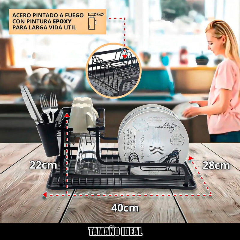 DESCRIPCION DEL PRODUCTO ¡Secaplatos de 2 Niveles: La Solución Ideal para tu Cocina! Presentamos nuestro Secaplatos de 2 Niveles, la opción perfecta para mantener tu cocina organizada y libre de desorden. Este ingenioso accesorio no solo maximiza el espacio disponible, sino que también agrega estilo y funcionalidad a tu área de lavado de platos. Doble Capacidad de Secado, Con dos niveles de secado, nuestro secaplatos te permite optimizar el espacio y acelerar el proceso de secado de tus platos, vasos y utensilios. Diseño Inteligente, Fabricado con materiales de alta calidad, este secaplatos cuenta con un diseño inteligente que garantiza una circulación de aire eficiente, evitando la acumulación de agua y reduciendo el riesgo de formación de moho. Durabilidad Garantizada, Construido con materiales resistentes y duraderos, este secaplatos está diseñado para soportar el uso diario. Su estructura robusta asegura que tus platos se sequen de manera segura sin comprometer la estabilidad. Fácil de Limpiar, La limpieza nunca ha sido tan fácil. Este secaplatos es fácil de desmontar y limpiar, lo que garantiza una higiene impecable en todo momento. Ahorro de Espacio, Ideal para cocinas con espacio limitado, nuestro secaplatos de 2 niveles te permite aprovechar al máximo cada centímetro de tu área de trabajo. Di adiós al desorden y da la bienvenida a la organización. CONTENIDO DE LA COMPRA X1 Secaplatos de 2 Niveles GARANTIA DE VENDEDOR: 6 MESES