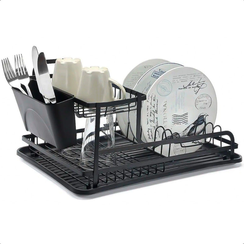 Secaplatos Metal 2 Niveles Negro Okshop Escurridor Loza Con Cubiertero
