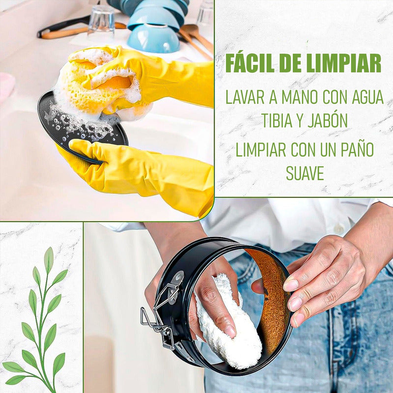 DESCRIPCION DEL PRODUCTO MOLE QUEQUE REDONDO 14CM Las sartenes de resorte bien diseñadas son opciones ideales para hacer pequeños pasteles de queso, quiches, mousse, pizzas de platos profundos, pasteles de aplastamiento, varios pasteles, galletas y también es el mejor gadget para postres de bricolaje, lo que le permite disfrutar de su tiempo de horneado Alta calidad, los moldes pequeños para tartas de queso, están hechos de material de acero al carbono de doble capa (no se oxidan). Mini moldes de resorte con revestimiento antiadherente de grado alimenticio para una fácil liberación al hornear pastel. Y los cierres de resorte están hechos de acero inoxidable sólido Parte inferior extraíble, los moldes para pasteles con forma de resorte cuentan con diseños de pestillo de resorte, que está firmemente conectado y se puede liberar fácilmente sin problemas. Los fondos desmontables pueden ayudarte a sacar los pasteles con facilidad después de hornear Fácil de usar, nuestra bandeja de resorte antiadherente permite que tus pasteles se desmoldeen fácil y completamente. Simplemente desengancha la bisagra para aflojar los lados de la bandeja elástica; levanta los lados hacia arriba y transfiere tu tarta de queso o quiche a una fuente para servir Fácil de limpiar, el revestimiento antiadherente premium puede reducir la absorción de grasa en la sartén mientras hace que la limpieza sea muy fácil. Para proteger el revestimiento antiadherente, se recomienda lavar a mano solo al limpiar los moldes redondos para tartas CONTENIDO DE LA COMPRA X2 MOLE QUEQUE REDONDO 14CM