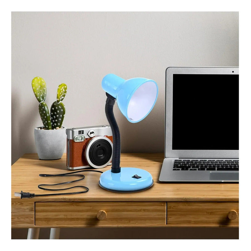 Lampara Escritorio Flexible Metal Okshop Azul E27 Pack 2 Velador Mesa No Aplica