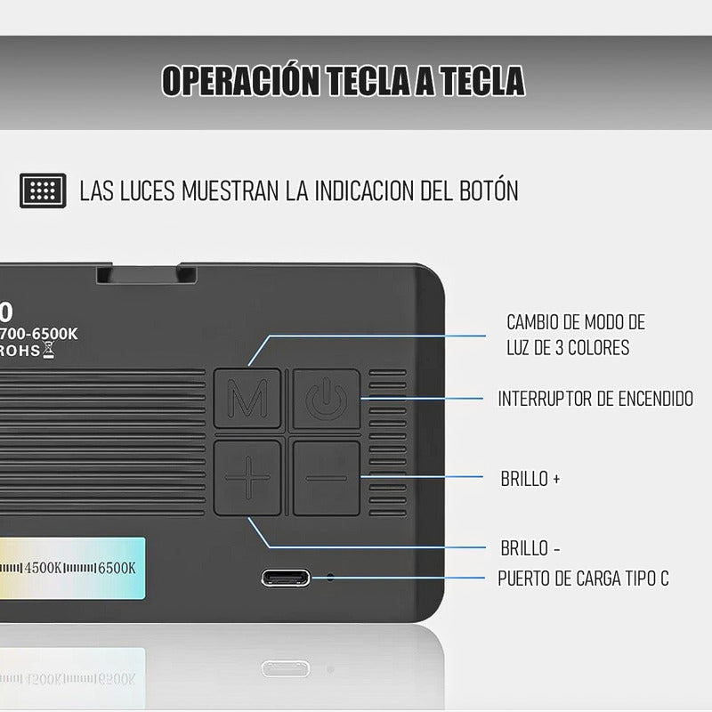 Iluminadores Camara Luz Led Recargable Luces Para Fotografia Negro Cálido/neutro/frio