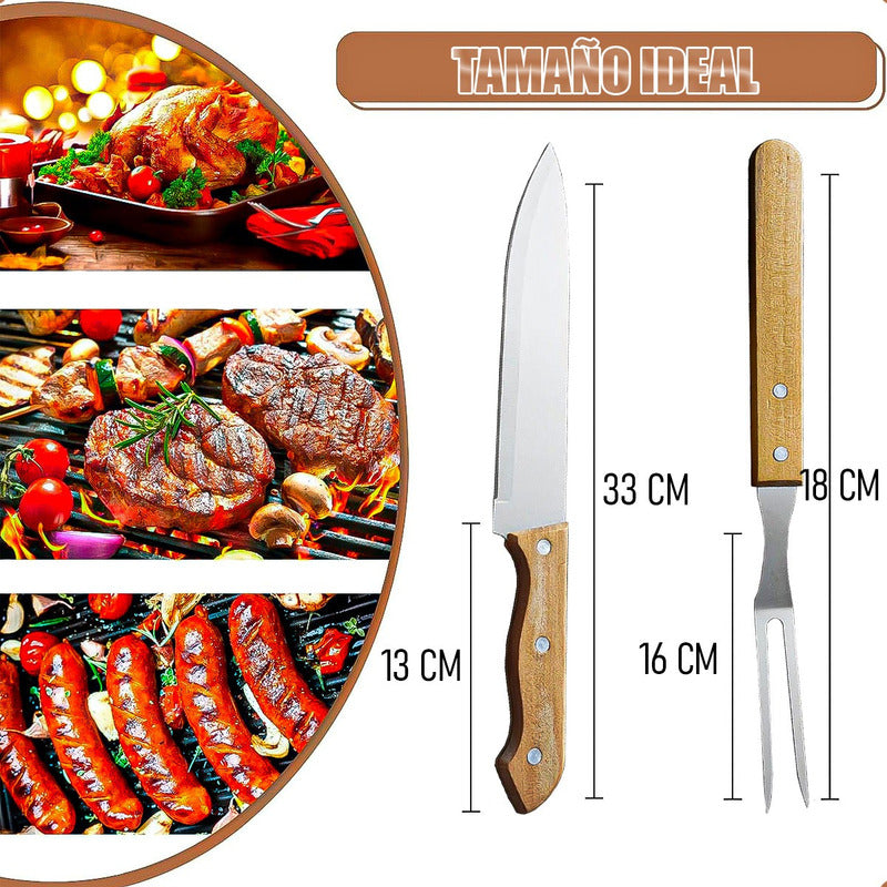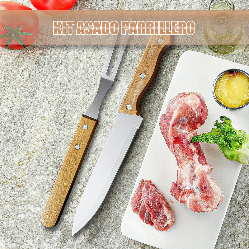 Kit Parrillero 2 Pcs Accesorios Para Parrillas Asados Acero