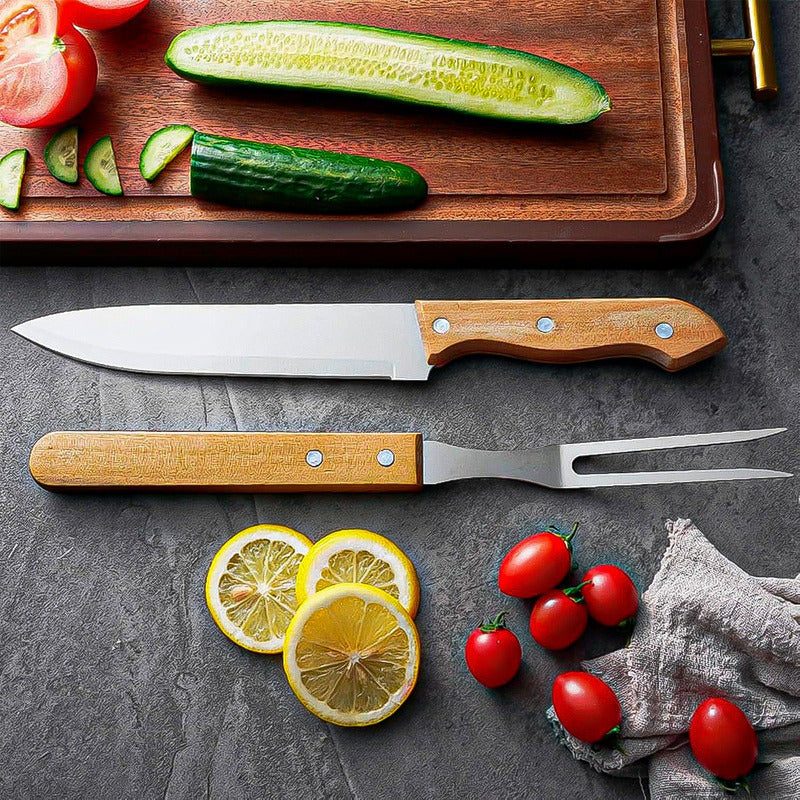 DESCRIPCION DEL PRODUCTO KIT PARRILLERO 2 PCS El Set de Asado de 2 Piezas es el complemento perfecto para los amantes de la parrilla y las deliciosas comidas al aire libre. Este set incluye dos herramientas esenciales para el asado: un cuchillo y un tenedor para la parrilla, ambas diseñadas para brindar un rendimiento óptimo y durabilidad. El cuchillo del set está especialmente diseñado con un filo afilado y resistente, ideal para cortar carnes asadas con precisión y facilidad. Su hoja de acero inoxidable de alta calidad garantiza un corte limpio y preciso en cada ocasión. Además, su mango ergonómico proporciona un agarre cómodo y seguro, permitiéndote tener un control total sobre tus cortes. El tenedor para la parrilla está diseñado con dientes robustos y afilados que permiten sujetar y dar vuelta las piezas de carne en la parrilla con facilidad. Su construcción de acero inoxidable asegura su durabilidad y resistencia al calor, permitiéndote manejar alimentos calientes sin preocupaciones. Ambas herramientas vienen acompañadas de un estuche práctico y elegante. El estuche proporciona una forma segura y conveniente de almacenar y transportar las herramientas de asado. Diseñado con materiales duraderos y un cierre seguro. Con el Set de Asado de 2 Piezas, podrás disfrutar de una experiencia de asado completa y exitosa. Tanto si eres un experto en la parrilla como si estás comenzando, este set te proporcionará las herramientas esenciales para lograr cortes de carne perfectamente preparados. ¡Prepárate para deleitar a tus invitados con tus habilidades de asado y este práctico set de calidad! CONTENIDO DE LA COMPRA X1 KIT PARRILLERO 2 PCS