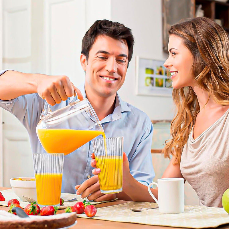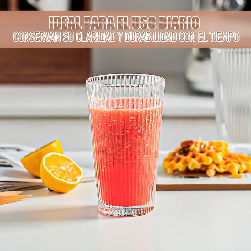 DESCRIPCION DEL PRODUCTO SET 3 VASOS DE VIDRIO Diseño elegante para cualquier ocasión, estos vasos de vidrio acanalado aportan un toque de elegancia a cualquier mesa. Su diseño a rayas es perfecto para entornos casuales y formales. Ya sea para bebidas diarias o para servir cócteles en fiestas, su aspecto elegante complementa cualquier bebida. Material duradero, hechos de vidrio grueso de alta calidad, estos vasos están diseñados para durar. Manejan una gama de temperaturas, lo que los hace adecuados para café caliente o batidos fríos. Ideal para el uso diario, conservan su claridad y durabilidad con el tiempo. Generosa capacidad de 450ML, lo que te da mucho espacio para bebidas como café helado, batidos o cócteles. Estos vasos garantizan que puedas servir porciones más grandes sin preocuparte por derrames, perfectos para fiestas y reuniones. Versátil para bebidas frías y calientes, ya sea que estés sirviendo café al vapor o cócteles fríos, estos vasos pueden manejar ambos. Utilízalos para agua, jugo, té o incluso bebidas mixtas, lo que los convierte en un esencial para cualquier cocina o bar en casa. Perfecto para entretener y regalar, este juego de 6 piezas es ideal para organizar cócteles, almuerzos o reuniones familiares. El diseño clásico seguramente impresionará, y también son un regalo maravilloso para cualquier persona que busque actualizar sus bebidas CONTENIDO DE LA COMPRA X2 SET 3 VASOS DE VIDRIO