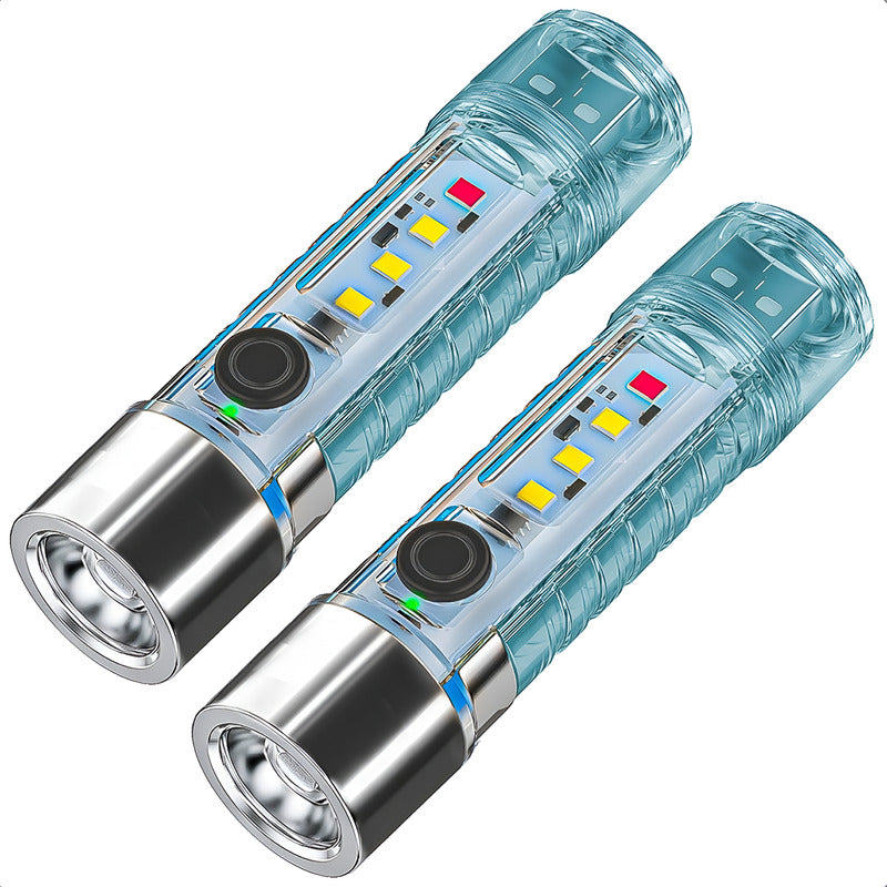 Linterna Recargable Linterna Bolsillo Pack2 Linterna Tactica Blanco/rojo Azul