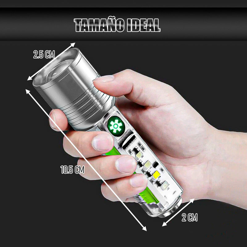 DESCRIPCION DEL PRODUCTO LINTERNA RECARGABLE Brillo ajustable, la linterna cuenta con múltiples niveles de brillo, lo que te permite ajustar la intensidad de la luz de acuerdo a tus necesidades. Ya sea que necesites una luz tenue para leer o un haz brillante para actividades al aire libre, esta linterna te tiene cubierto. Recargable por USB con una interfaz de carga USB, esta linterna se puede cargar fácilmente con un banco de energía, portátil o cualquier puerto USB. Di adiós a las molestias de reemplazar y disfruta de la comodidad de recarga sobre la marcha. Accesorio para llavero, la linterna viene con un accesorio de llavero, lo que hace que sea fácil de fijar a tus llaves u otros accesorios. Esto garantiza que siempre tengas una fuente de luz fiable contigo, sin importar dónde vayas. Compacta y portátil, esta mini linterna de mano está diseñada para ser compacta y ligera, lo que hace que sea fácil de llevar en tu bolsillo, bolso o llavero. Su pequeño tamaño te permite tener una fuente de luz fiable dondequiera que vayas. CONTENIDO DE LA COMPRA X2 LINTERNA RECARGABLE