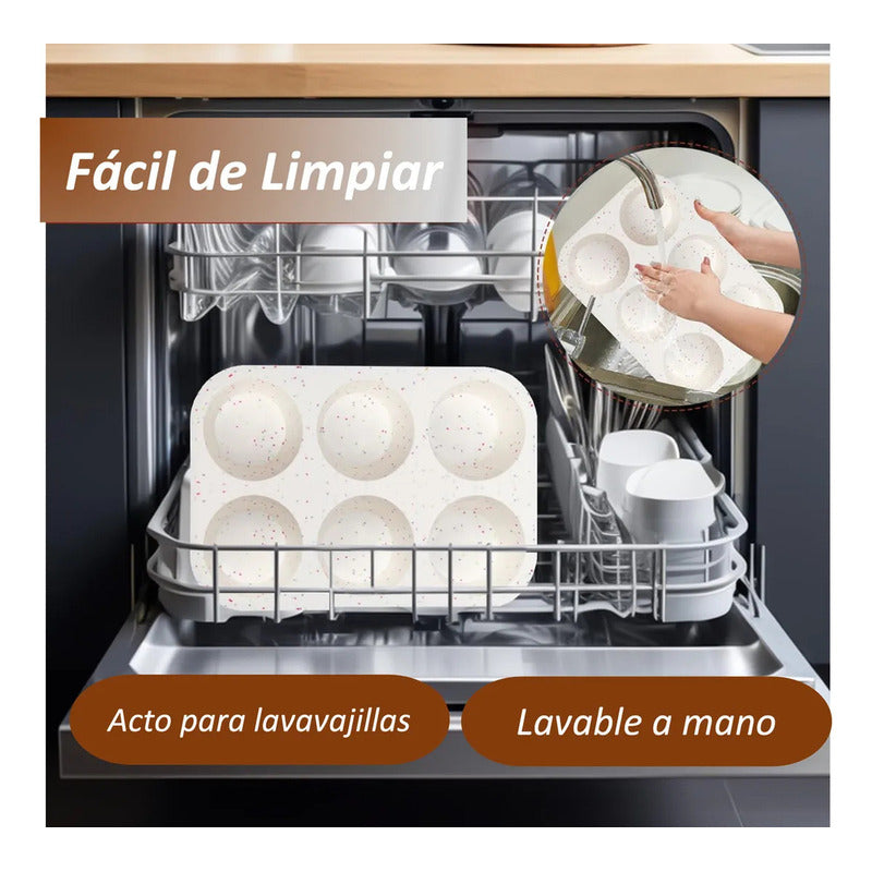 DESCRIPCION DEL PRODUCTO: Este molde de silicona para cupcakes de la marca Okshop es el complemento perfecto para tus sesiones de repostería. Con 6 ranuras redondas de 6 cm de diámetro cada una, te permite hornear cupcakes de manera uniforme y con resultados profesionales. Gracias a su material antiadherente, desmoldar tus creaciones es fácil y rápido, sin necesidad de engrasar el molde. Resistente al calor, este molde es ideal para uso en horno, garantizando durabilidad incluso con uso frecuente. Su diseño práctico y silicona de alta calidad facilitan la limpieza, ahorrándote tiempo y esfuerzo. Con dimensiones de 28 cm de largo x 19 cm de ancho x 3 cm de alto, es compacto y fácil de almacenar. CARACTERÍSTICAS DEL PRODUCTO Modelo: 6 unidades (6 ranuras) Forma: Redonda Material: Silicona resistente y antiadherente Uso recomendado: Horno Dimensiones: 28 cm (largo) x 19 cm (ancho) x 3 cm (alto) Diámetro por cupcake: 6 cm No incluye tapa CONTENIDO DE LA COMPRA 01 Molde de silicona para 6 cupcakes.