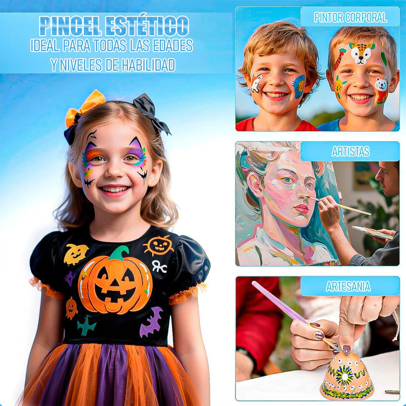 DESCRIPCION DEL PRODUCTO SET ARTE DE PINCELES Pelo de nailon sintético de alta calidad, nuestros pinceles de pintura facial están hechos de material de nailon de alta calidad, que es suave, flexible y suave con la piel, asegurando una aplicación suave. Agarre cómodo, mango de madera de abedul resistente de diseño ergonómico, que proporciona un agarre y control cómodos. Este cómodo agarre reduce la fatiga de la mano durante el uso prolongado, por lo que es ideal para pintar la cara detallada Pincel de pintura pastel, Los pinceles de artista pastel se compone de 6 colores y tamaños diferentes de macarrones, suministros de arte estético para cada mujer y niña, perfecto para artistas profesionales, principiantes, estudiantes, pintor corporal y aficionado a la artesanía Amplia gama de aplicaciones, el juego de pinceles de pintura se puede aplicar ampliamente para pintura facial, pintura de pasatiempos artísticos y artesanales, cerámica, acrílico, acuarela, color al óleo, libros para colorear y utilizar en uñas, cuerpo, roca, pintura de zapatos y mucho más. Son perfectos para crear diseños intrincados para Halloween, cosplay, actuaciones escénicas y otras ocasiones especiales CONTENIDO DE LA COMPRA X1 SET ARTE DE PINCELES