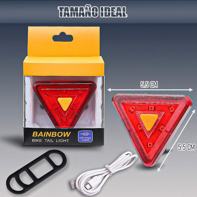 DESCRIPCION DEL PRODUCTO LUCES TRASERAS DE BICI Ligero, fácil de instalar, lo suficientemente fuerte, no se cae, duradero y confiable, luz de advertencia de bicicleta Lámpara trasera de bicicleta, luz de advertencia segura para que montes, puedes sentirte aliviado al andar en bicicleta, lámpara de bicicleta Luz trasera de bicicleta, las luces traseras multifuncionales para vehículos son duraderas, fuertes y resistentes a las caídas, luces traseras triangulares Luces traseras carga y descarga fácil y rápida con un botón, luz de señal de advertencia Cinco modos: flash, flash lento, rodando - rápido, rodando - luz lenta, respiración lenta, luz de señal, lámpara triangular CONTENIDO DE LA COMPRA X1 LUCES TRASERAS DE BICI