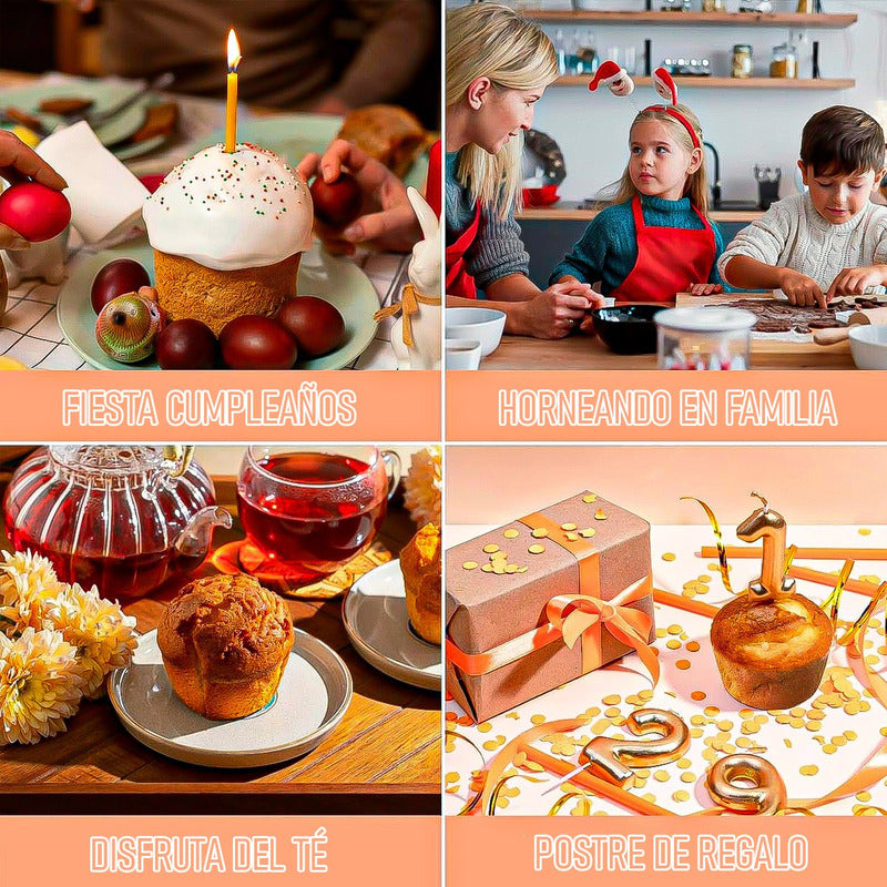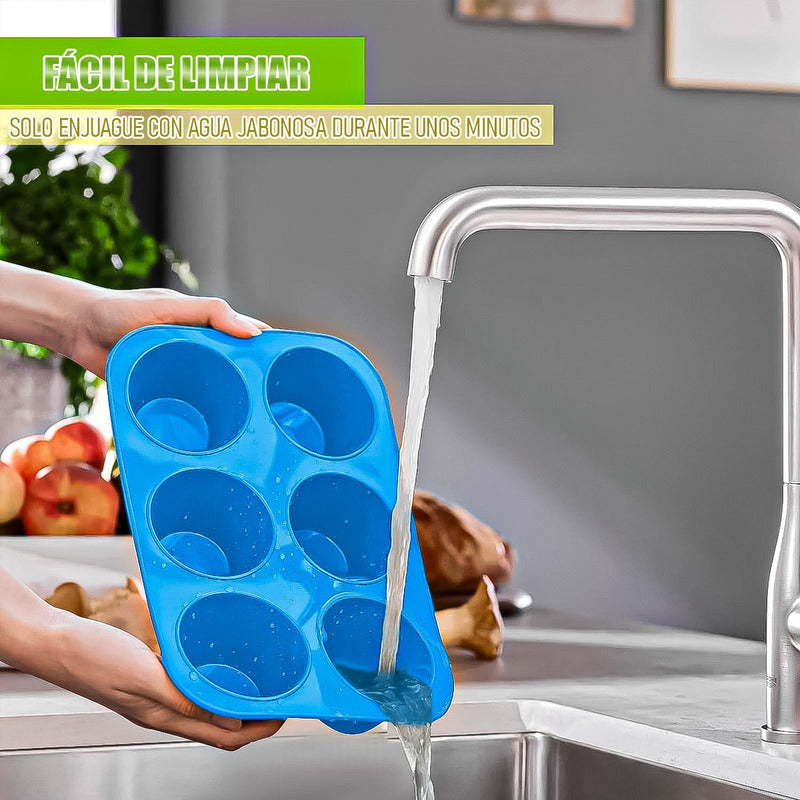 DESCRIPCION DEL PRODUCTO MOLDE DE SILICONA 6 CUP El molde de silicona para magdalenas está hecho de silicona de grado alimentario, que es blanda y elástica, y los pasteles se pueden aflojar girando suavemente y se pueden lavar a mano con jabón o poner en el lavavajillas después de su uso La silicona para moldes de magdalenas soporta temperaturas de -40 °C a +230 °C y puede utilizarse en microondas, hornos y frigoríficos. El diseño de junta reforzada entre los moldes de la parte posterior hace que nuestros moldes para magdalenas sean más estables y menos propensos a ablandarse y deformarse Los moldes de silicona para hornear pueden ayudarle a hacer una variedad de alimentos, incluyendo magdalenas, cupcakes, huevos cocidos, postres horneados en bandeja, pudines, pasteles, tartas, pasteles de pollo y mucho más Este molde de silicona para magdalenas es perfecto para cualquier persona a la que le guste hornear, como regalo de cumpleaños, regalo de inauguración de la casa y mucho más CONTENIDO DE LA COMPRA X2 MOLDE DE SILICONA 6 CUP