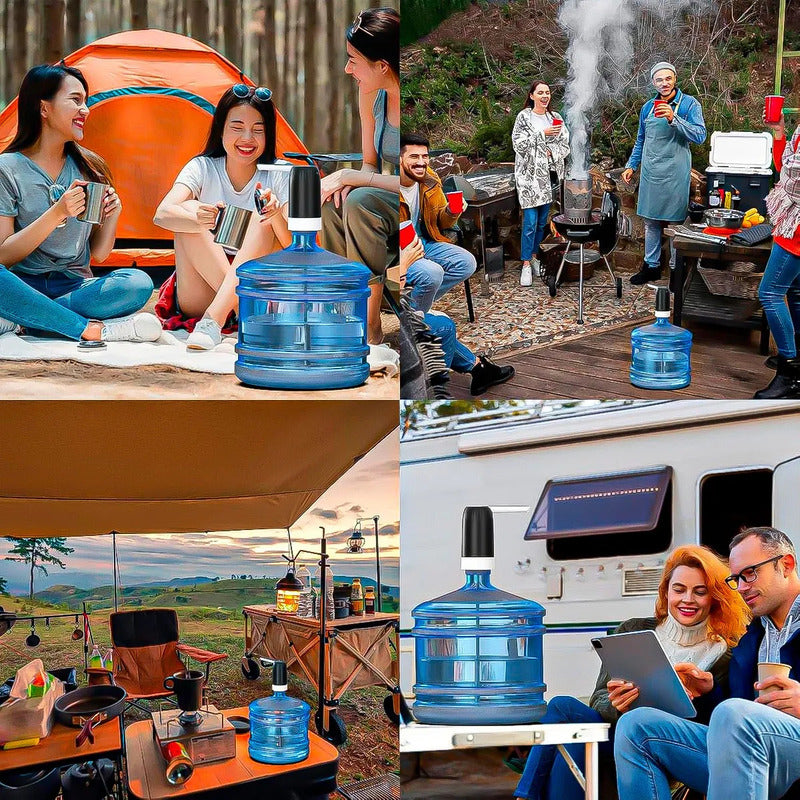 DESCRIPCION DEL PRODUCTO DISPENSADOR DE AGUA PORTATIL Hecho de manguera de silicona de grado alimenticio y plástico ABS de alta densidad, sin olor. Sin preocupaciones de seguridad Batería incorporada de 1200 mAh, se puede utilizar para alrededor de 4-6 botellas de botella de 5 galones después de una carga completa. No es necesario cambiar la batería regularmente Apagado automático en 1 minuto, una pulsación para encender y apagar el dispensador automático de agua. Además, una vez que lo enciendas, dejará de funcionar automáticamente después de un minuto Súper fácil de usar, solo un botón. Presiona para bombear y presiona nuevamente para detener el bombeo. Incluso un niño o personas mayores pueden usar 2 pasos para instalar, no se necesita ninguna herramienta para instalar. Simplemente instale la manguera de agua y luego simplemente sujétela a las botellas. No se necesitan herramientas Apagado automático en 1 minuto, si no se detiene, dejará de bombear automáticamente en 1 min. No hay necesidad de esperar a un lado 10 minutos de trabajo continuo, presione y mantenga presionado 3 segundos, bombeará continuamente durante 10 minutos. Se adapta a múltiples usos como alimentar, jugar y regar plantas CONTENIDO DE LA COMPRA X1 DISPENSADOR DE AGUA PORTATIL