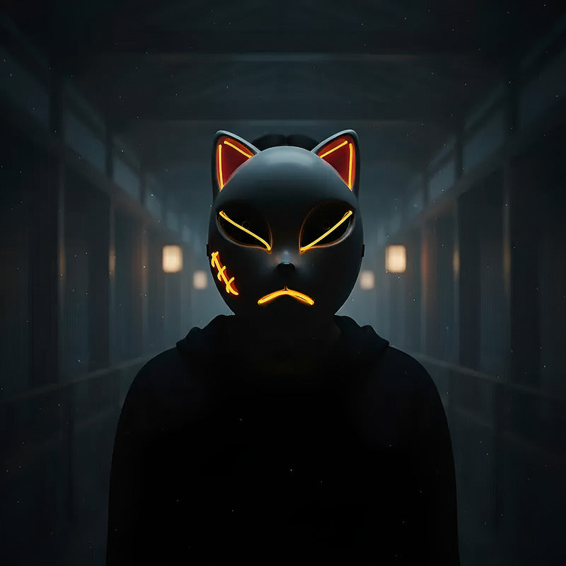 Mascara De Gato Kimetsu No Yaiba Con Luces Mascara Halloween Amarillo Demon Slayer