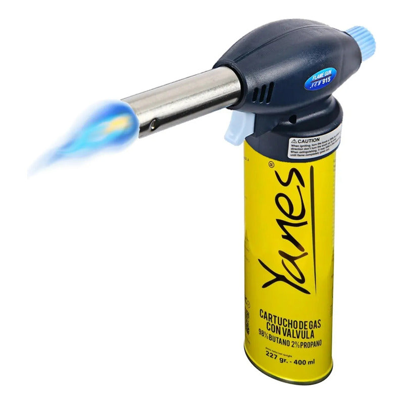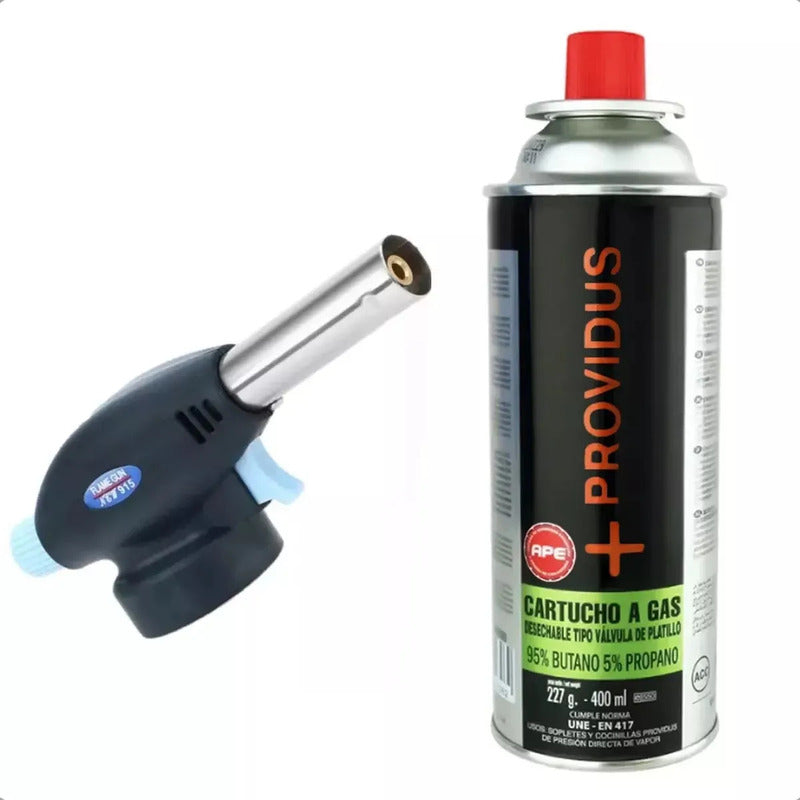 DESCRIPCIÓN DEL PRODUCTO: Excelente soplete ideal para repostería, camping o montaña, múltiples usos, fácil de utilizar. Sirve para Dorar en repostería, Soldadura en juntas de tuberías, Encender barbacoas y muchas aplicaciones mas (INCLUYE GAS) CARACTERÍSTICAS DEL PRODUCTO -Peso: 150 g -Consumo de gas: 80g/h, 960 kcal -Calibre de la boquilla: 19 mm -Potencia máxima de fuego: 1300° C -Método de encendido: automático -Uso: gas butagas de 220 g ----------------------------------------------------------------------------------------------------- CONTENIDO DE LA COMPRA: -01 Soplete para llama -01 Gas para soplete Butano 94%, Propano 6%, Contenido: 227 grs