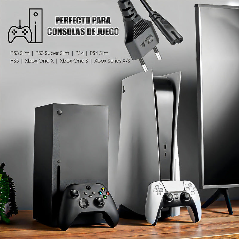 DESCRIPCION DEL PRODUCTO CABLE DE ALIMENTACIÓN DE 1.5 METROS CONEXIÓN DE CALIDAD: Nuestro cable de alimentación flexible está diseñado para ser duradero y ligero. El cable está revestido en una cubierta de PVC duradera para garantizar una conexión de alimentación confiable. Compatibilidad universal: el cable de alimentación de la figura 8 se puede utilizar para computadoras de escritorio, escáneres, impresoras, monitores de TV LED, proyectores, altavoces alimentados, Apple TV, Sony PS4, PS3 Slim Edition, PS2 y otros dispositivos que tienen el conector de alimentación de 2 clavijas. ESPECIFICACIONES: El cable de alimentación europeo está clasificado para AC250V y 2.5A. La conexión es de un extremo macho Europlug a un extremo hembra C-7. Compatibilidad: nuestro confiable cable de alimentación de 2 clavijas con conexión a tierra figura 8 se puede utilizar para la mayoría de monitores, computadoras e impresoras. CONTENIDO DE LA COMPRA X1 CABLE DE ALIMENTACIÓN DE 1.5 METROS