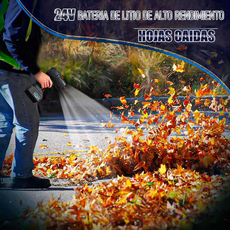 DESCRIPCION DEL PRODUCTO SOPLADOR PROFESIONAL DE POLVO Motor turbo de alto rendimiento: equipado con tecnología Turbo avanzada, este soplador de hojas inalámbrico genera una velocidad de viento de hasta 180,000 RPM y 120 MPH. Su motor de alta capacidad y sus grandes palas de turbofán garantizan un flujo de aire superior Diseño versátil multifunción, más allá del soplado de hojas, este soplador es perfecto para una variedad de tareas de limpieza, incluyendo secar autos, limpiar entradas de vehículos, quitar el polvo de espacios difíciles de alcanzar e incluso mejorar el flujo de aire para incendios de barbacoa. Su diseño compacto e inalámbrico lo convierte en una herramienta de limpieza imprescindible Batería de 48 V de larga duración, alimentada por una batería recargable de alta capacidad Ligero y portátil, cuenta con un agarre ergonómico para un manejo sin fatiga, incluso durante un uso prolongado. Su tamaño compacto y su estuche de almacenamiento incluido hacen que sea fácil de transportar y almacenar, perfecto para limpieza sobre la marcha o tareas rápidas al aire libre CONTENIDO DE LA COMPRA X1 SOPLADOR PROFESIONAL DE POLVO