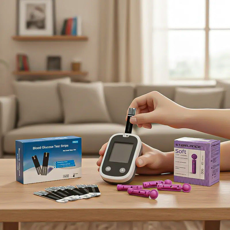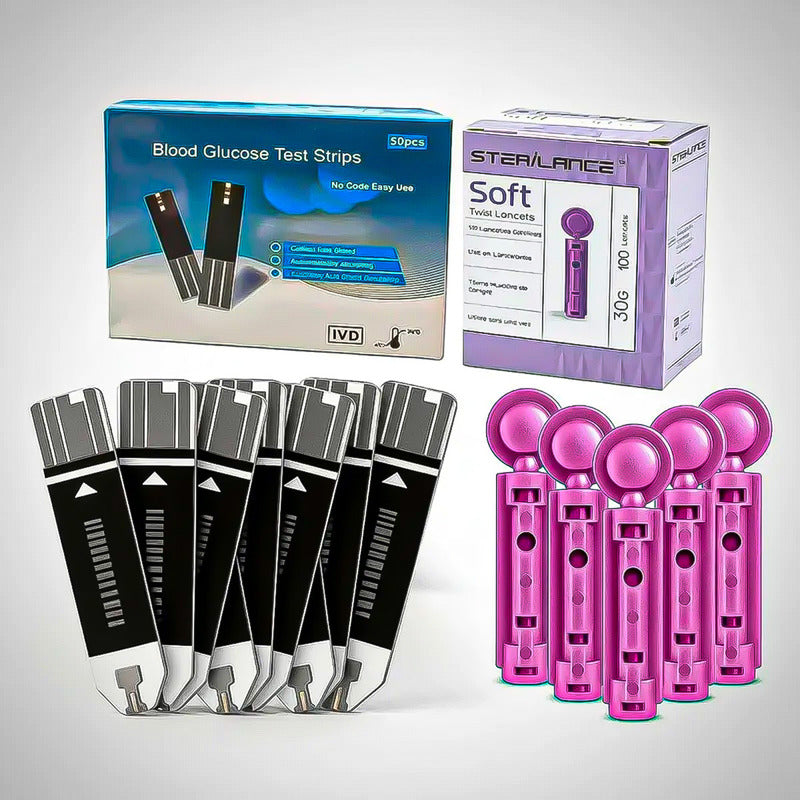 DESCRIPCION DEL PRODUCTO 50 TIRAS REACTIVAS Y 50 LANCETAS PARA GLUCOMETRO RECARGA, MIDE Y SIGUE CUIDANDO DE TU SALUD Este completo kit de recarga te permite estar listo de inmediato para tus próximas mediciones. El kit contiene 50 tiras reactivas y 50 lancetas estériles desechables, especialmente diseñadas para usar con el medidor de glucosa, Gracias a las tiras de alta calidad y las cómodas lancetas, puedes medir de forma rápida, segura y sin complicaciones, todo desde la comodidad de tu hogar. Las tiras reactivas tienen reconocimiento automático (no requieren codificación) y requieren una cantidad mínima de sangre. Las lancetas moradas se adaptan perfectamente al dispositivo de punción y garantizan una punción prácticamente indolora. Ideales para uso diario y siempre fiables. Características principales: 50 tiras de prueba Y 50 lancetas: todo lo que necesita en un solo paquete Rápido y preciso: resultados en segundos con solo 0,4 de sangre Punción cómoda: lancetas estériles con profundidad ajustable a través del dispositivo de punción Listo para usar: no requiere codificación ni configuración CONTENIDO DE LA COMPRA X1 50 TIRAS REACTIVAS Y 50 LANCETAS PARA GLUCOMETRO