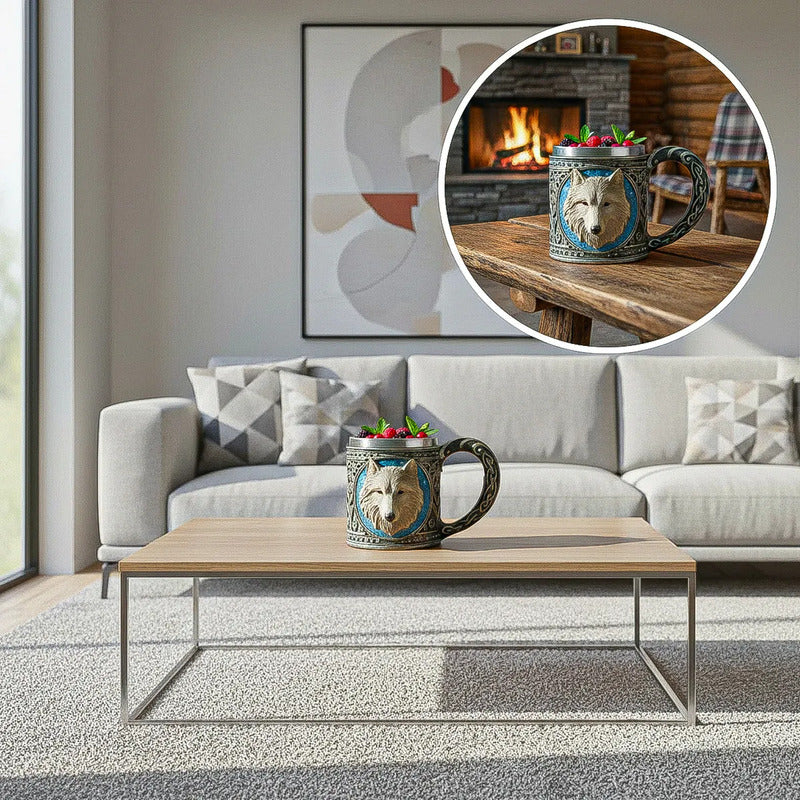 DESCRIPCION DEL PRODUCTO Tazon con motivo de lobo de game of thrones - Material: Acero Inoxidable - Medidas: 10,5 cm (alto) y 8,5 cm (diametro) - Motivo: Lobo CONTENIDO DE LA COMPRA X1 Tazon con motivo de lobo de game of thrones