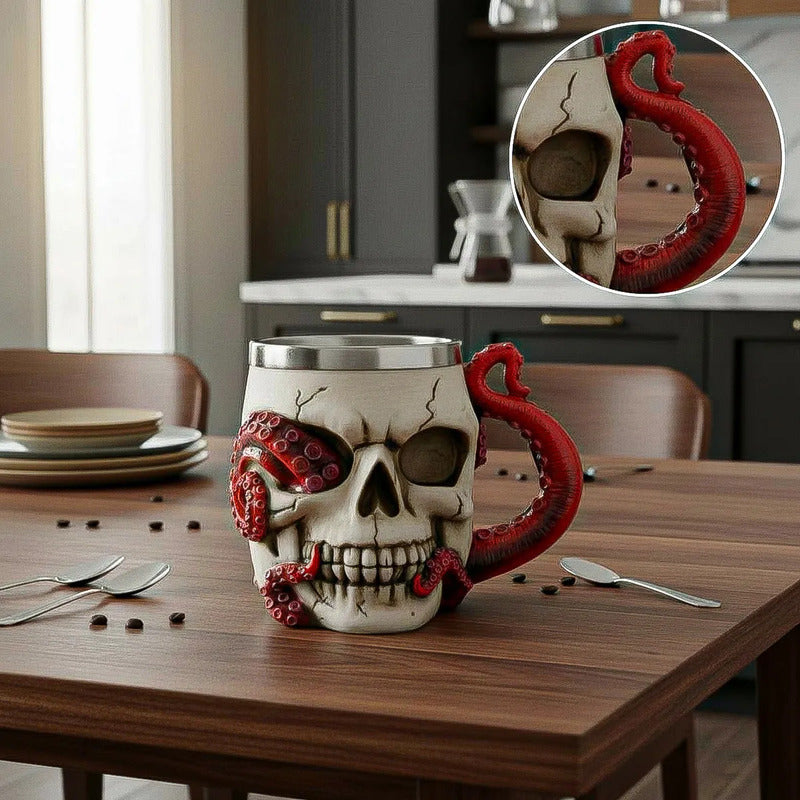 Taza Grande Taza Kraken Tazon Calavera Mug Acero Inoxidable Beige Calavera