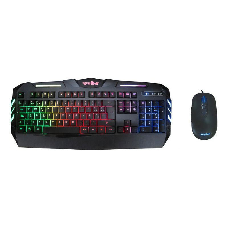Teclado Y Mouse Combo Gamer Weibo 520 Retroiluminado Usb Color Del Mouse Negro Color Del Teclado Negro