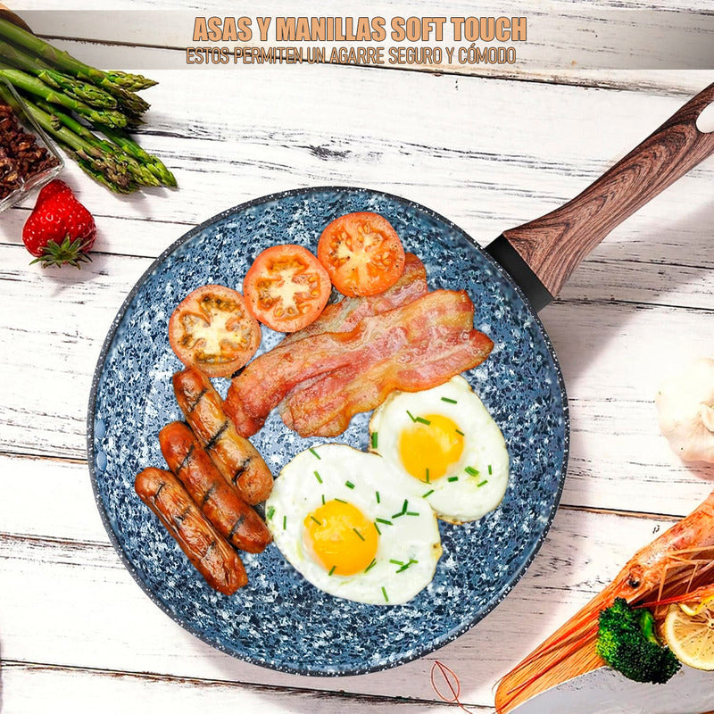 DESCRIPCION DEL PRODUCTO BATERÍA DE COCINA KEEP 5 PIEZAS ROKKA De excelente dureza superficial y una buena resistencia a los arañazos y a los lavados. Ultra resistente, Ultra saludable, Ultra fácil de limpiar. El antiadherente perfecto para exigencias elevadas, pintura antiadherente con textura de ROKKA ILAG Basic es un revestimiento antiadherente de varias capas, con excelentes propiedades antiadherentes y una alta resistencia al desgaste para el uso doméstico intensivo. Excelente dureza superficial y una buena resistencia a los arañazos y los lavados. CUERPO FUNDIDO: Distribuye uniforme el calor, mayor resistencia a la corrosión y rayado, mayor ahorro de energía. ASAS Y MANILLAS SOFT TOUCH: Estos permiten un agarre seguro y cómodo. La guarda entre el asa y la base hace que los mangos no se calienten. ANTIADHERENTE PREMIUM: "ILAG" es un antiadherente de origen suizo que proporciona el cuidado adecuado para los nutrientes de tus comidas, además de una fácil y rápida limpieza. 1 Olla de 25 cm con tapa, 4.6 litros (25 x 10 cm) 1 Olla de 21 cm con tapa, 2.2 litros (21 x 9 cm) 1 Sarten 24.5cm (25 x 4.5 cm). CONTENIDO DE LA COMPRA X2 Ollas X1 Sarten X2 Tapas