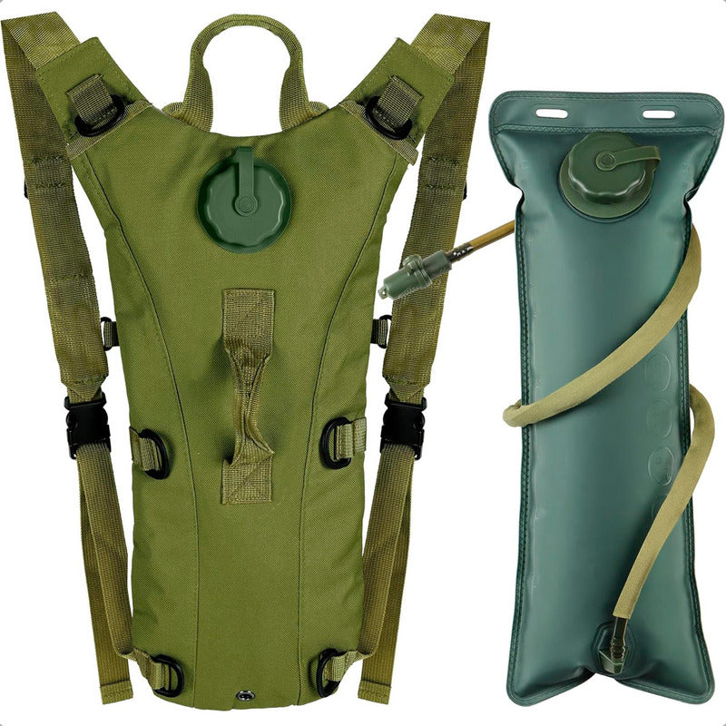 DESCRIPCION DEL PRODUCTO BOLSA DE HIDRATACION CAMELBACK+BOLSA DE AGUA Vejiga de hidratación 3L: Depósito de agua desmontable con apertura de llenado expandida incluida. Hecho de materiales EVA de grado alimenticio. Su amplia apertura hace que sea fácil de limpiar y añadir cubitos de hielo. La válvula ON/OFF ayuda a ajustar el flujo de agua y evitar fugas. 2 compartimentos funcionales: El bolsillo principal contiene una cámara de agua de 3L/106oz con una abertura grande y una más pequeña que conecta el tubo inteligente. La capa trasera para guardar pertenencias personales como teléfono celular, cartera, llaves, etc. Diseño cómodo: dos correas de hombro ajustables y una correa segura mantiene en la bolsa de camello en la espalda y reducen el rebote, por lo que se adapta perfectamente a tus hombros, pecho y cintura. Adecuado para hombres y mujeres. Material de buena calidad: esta mochila de agua para correr pesa solo 0.8 libras. Hecho de tela Oxford de alta densidad 900D, ligera y resistente al desgaste. La sección trasera suave mantendrá tu espalda cómoda y transpirable mientras la sostienes durante las actividades al aire libre. Versatilidad: la mochila táctica de hidratación con bolsa de agua será un gran compañero para senderismo, ciclismo, correr, escalada, caza y cualquier viaje corto. CONTENIDO DE LA COMPRA X1 MOCHILA + BOLSA DE HIDRATACION CAMELBACK
