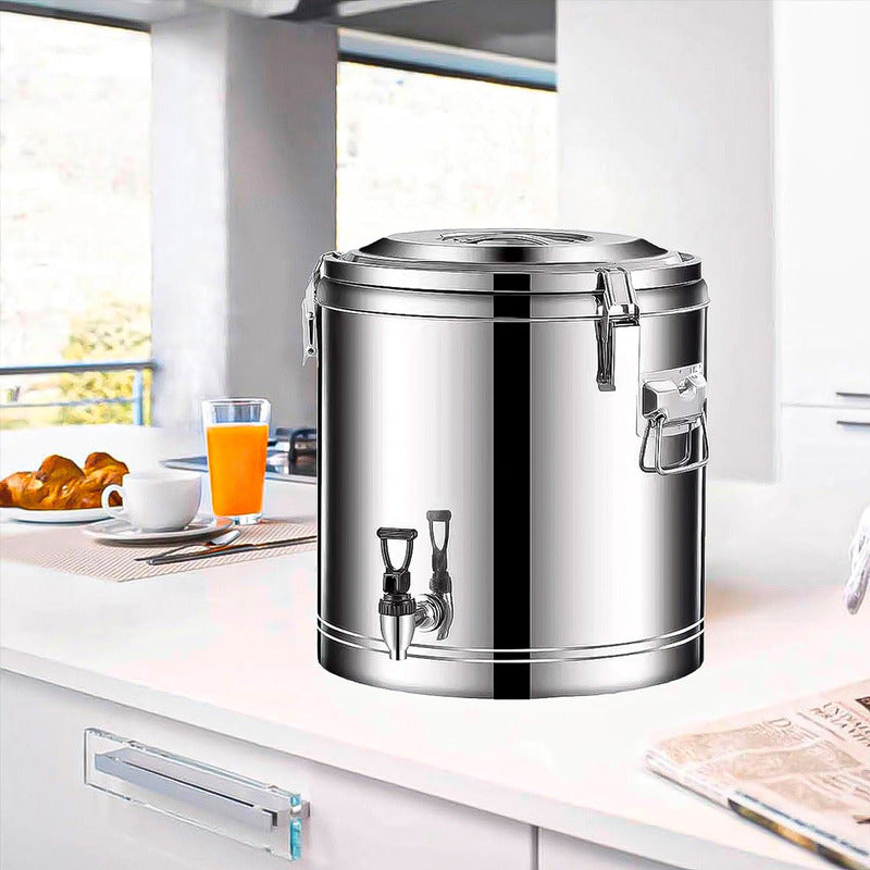 DESCRIPCION DEL PRODUCTO TERMO ACERO INOXIDABLE 10 LITROS Acero inoxidable de alta calidad: Este barril aislado hecho de acero inoxidable de alta calidad, es resistente a la oxidación, a la corrosión y a las altas temperaturas, y se puede utilizar durante mucho tiempo. Buen efecto de aislamiento: acero inoxidable espuma espesada, pared de barril de tres capas engrosada, espuma completa de capa intermedia, este cubo de aislamiento de calor frío buen efecto de aislamiento, aislamiento hasta 4-10 horas. Grifo: El dispensador de bebidas aislado está equipado con grifo de acero inoxidable, manija de resina, manija anti-escaldaduras, flujo de agua suave. Fácil de transportar: Este barril aislado equipado con asas de acero inoxidable en ambos lados, resistente, cómodo al tacto, fácil de transportar. Amplia gama de usos: Además de las bebidas, este cubo aislante también se puede utilizar para almacenar arroz, agua caliente, zumo, café, bebidas frías, sopas. Muy adecuado para cafeterías, tiendas de té con leche, restaurantes, hoteles y otras ocasiones. CONTENIDO DE LA COMPRA X1 TERMO ACERO INOXIDABLE 10 LITROS