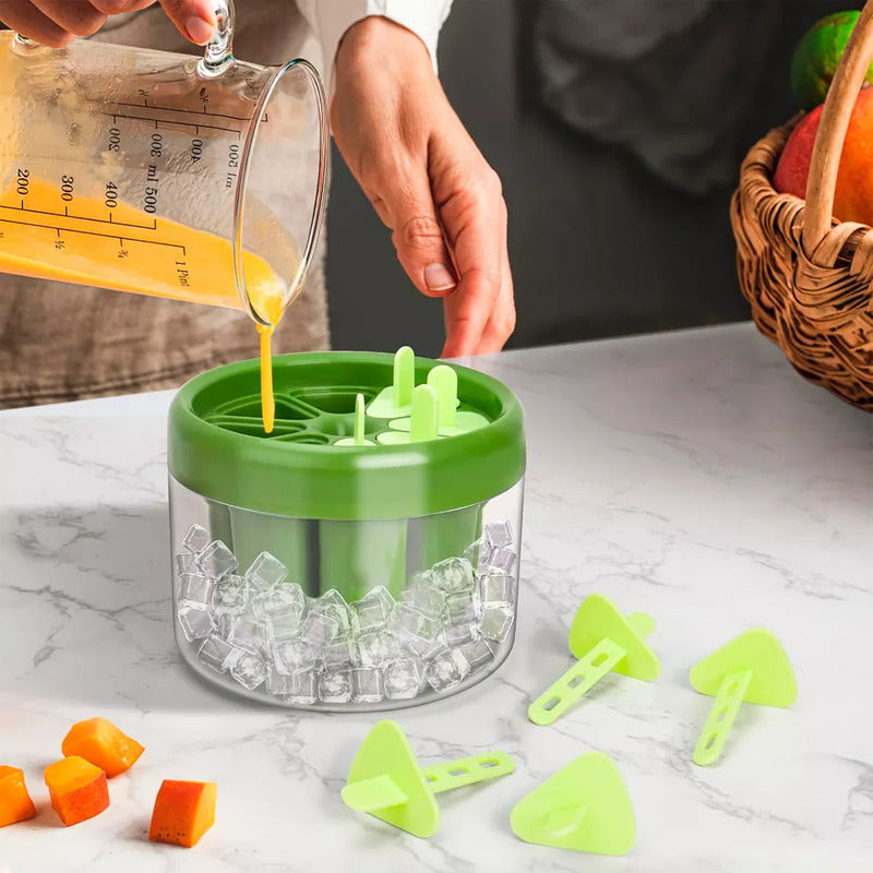 DESCRIPCION DEL PRODUCTO ¿Por qué no hacer paletas en verano? Deja volar tu imaginación y haz paletas especiales con jugo de frutas, leche, yogur, fruta, helado, pudín, mermelada y jalea. Una opción maravillosa para niños, adultos y bebés. Fabricado con materiales de grado alimenticio libres de BPA, reutilizable, sin olor, sin bordes afilados, su bebé puede usarlo de manera segura. Cubierta inferior lisa: fácilmente desmontable, fácil de limpiar, apta para lavavajillas. Vierte tus bebidas en este molde de silicona para hielo y colócalo en el congelador durante 3 a 6 horas, sácalo y disfruta de tu delicioso helado. Estos moldes se pueden congelar en el refrigerador durante mucho tiempo sin preocuparse por la deformación del molde de hielo. CARACTERÍSTICAS - Dimensiones: 13 cm x 11 cm - Dimensiones de Paleta: 6.5 cm x 2.5 cm aprox - Incluye 8 HELADOS DE PALETA - Peso: 190gr CONTENIDO DE LA COMPRA X1 MOLDE DE HELADO DE PALETAS