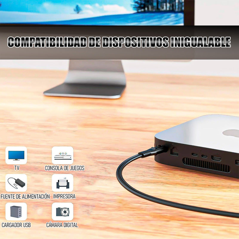 DESCRIPCION DEL PRODUCTO CABLE DE ALIMENTACIÓN DE 1.5 METROS CONEXIÓN DE CALIDAD: Nuestro cable de alimentación flexible está diseñado para ser duradero y ligero. El cable está revestido en una cubierta de PVC duradera para garantizar una conexión de alimentación confiable. Compatibilidad universal: el cable de alimentación de la figura 8 se puede utilizar para computadoras de escritorio, escáneres, impresoras, monitores de TV LED, proyectores, altavoces alimentados, Apple TV, Sony PS4, PS3 Slim Edition, PS2 y otros dispositivos que tienen el conector de alimentación de 2 clavijas. ESPECIFICACIONES: El cable de alimentación europeo está clasificado para AC250V y 2.5A. La conexión es de un extremo macho Europlug a un extremo hembra C-7. Compatibilidad: nuestro confiable cable de alimentación de 2 clavijas con conexión a tierra figura 8 se puede utilizar para la mayoría de monitores, computadoras e impresoras. CONTENIDO DE LA COMPRA X2 CABLE DE ALIMENTACIÓN DE 1.5 METROS
