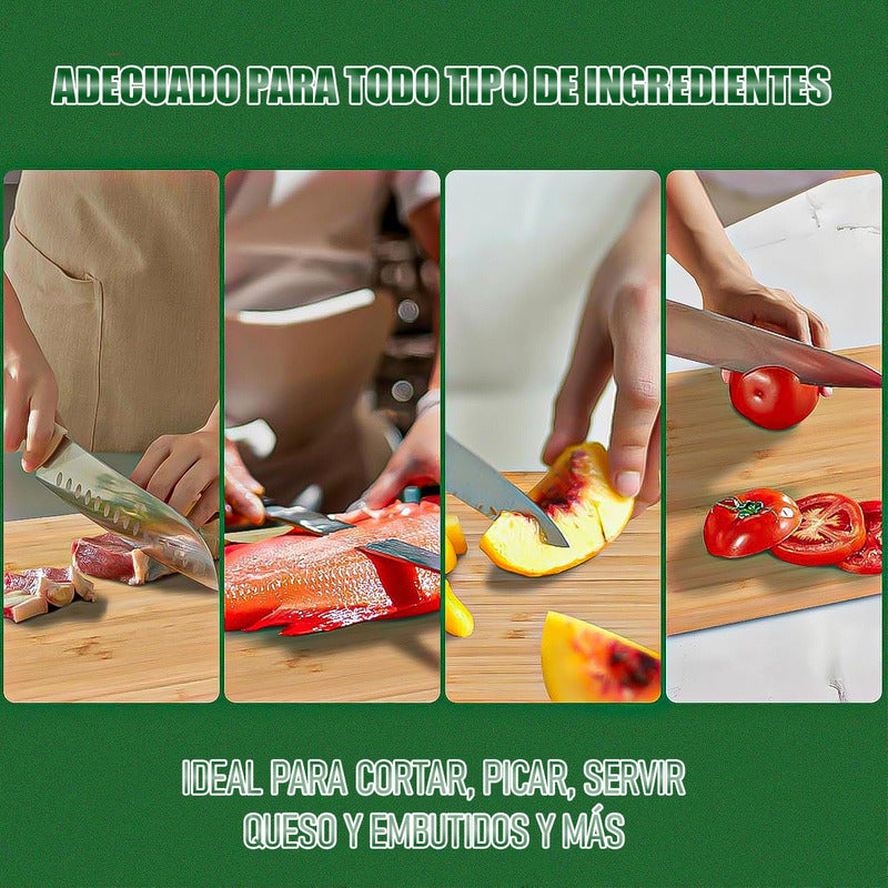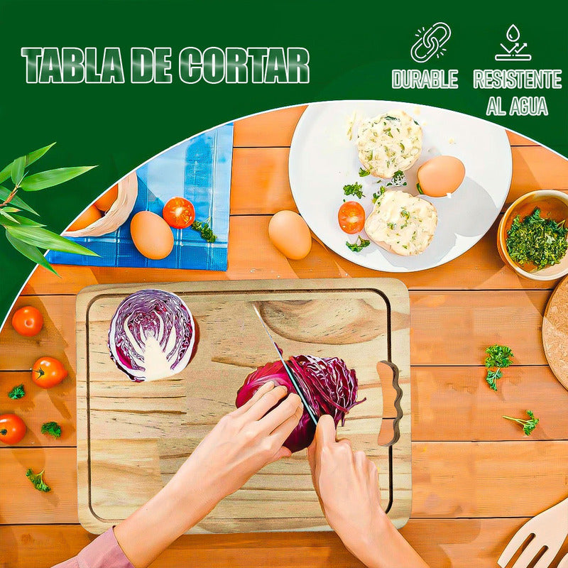 DESCRIPCION DEL PRODUCTO TABLA DE PICAR Tablas de picar, puedes ocuparlo en tu cocina, o también para realizar esos ricos asados. Esta tabla de picar esta confeccionada en madera de muy buena calidad y durabilidad. Ranura de jugo integrada para un espacio de trabajo limpio: la ranura profunda para jugo atrapa líquidos de frutas, carnes y verduras, manteniendo tu encimera ordenada. Fácil de limpiar y mantener, simplemente lavar con jabón suave y agua tibia, luego secar al aire. Un complemento perfecto para cualquier cocina, ideal para preparar alimentos y servir. Adición multiusos y elegante para cualquier cocina, ideal para cortar, picar, servir queso y embutidos, o usar como una pieza decorativa de cocina. - Largo: 34 cm - Ancho: 24 cm - Espesor: 1.5 cm - Material: MADERA CONTENIDO DE LA COMPRA X1 TABLA DE PICAR
