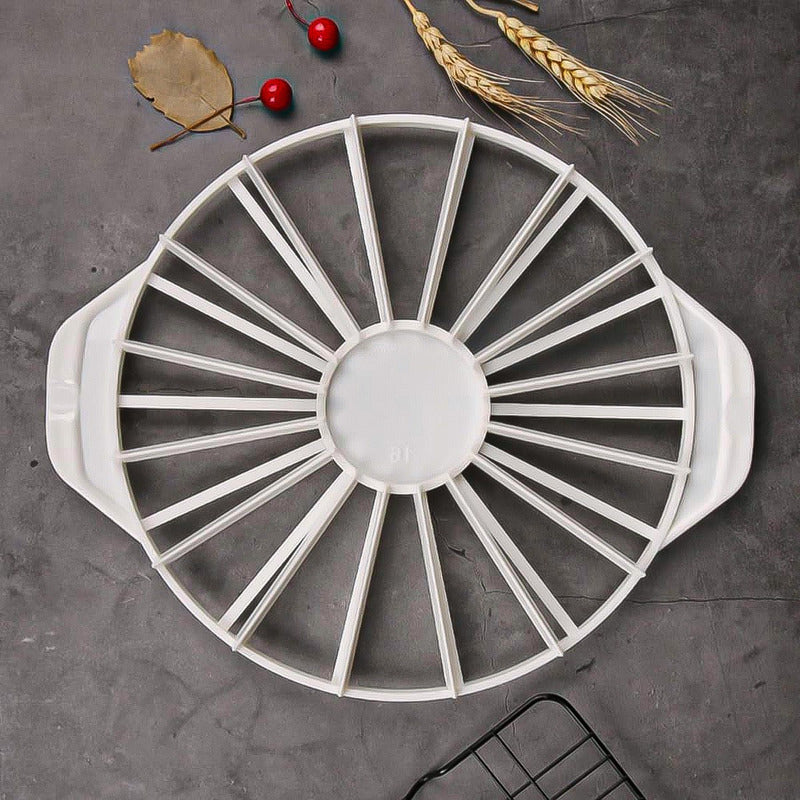 DESCRIPCION DEL PRODUCTO LA CORTADORA DE PASTELES La cortadora de pasteles redonda adopta un diseño de doble cara, presione suavemente la partición sobre el pastel o pastel y luego use un cuchillo para cortar a lo largo de la abolladura. Hay asas convenientes en ambos lados del divisor de pastel, que pueden dividir el pastel de manera rápida y precisa, y cortar el pastel o pastel en 14 o 16 piezas. Este divisor de pasteles está hecho de plástico apto para alimentos, liviano y duradero, fácil de almacenar y limpiar. Esta cortadora de pasteles es adecuada para pasteles, tartas, etc. Es muy adecuada para dividir todos los productos de panadería de manera uniforme. Es una herramienta de cocina indispensable y un gran regalo para familiares y amigos. CONTENIDO DE LA COMPRA X1 CORTADORA DE PASTELES