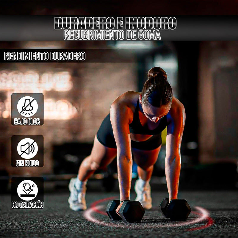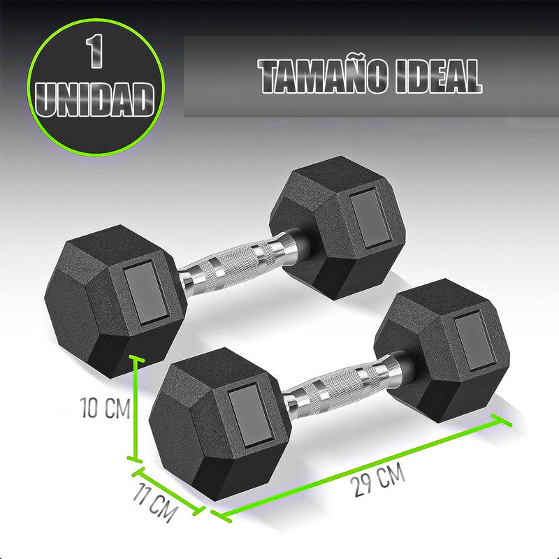 DESCRIPCION DEL PRODUCTO PESA HEXAGONAL 5KG Hecho de hierro fundido sólido y recubierto con una capa gruesa de goma de olor ultra bajo. Son muy convenientes de usar y almacenar. Las mancuernas se pueden utilizar para una variedad de ejercicios, se pueden usar para cualquier movimiento de articulaciones múltiples que se dirija a los principales grupos musculares del cuerpo, como sentadillas y prensas de pecho. Mango ergonómico moleteado para un agarre cómodo y seguro. El diseño hexagonal elimina el balanceo y facilita el almacenamiento. Las mancuernas recubiertas de goma son mucho más fáciles en tu suelo con sus propiedades de absorción de impactos, también pueden resistir grietas y astillamientos cuando se colocan en gran medida o se caen accidentalmente. CONTENIDO DE LA COMPRA X1 PESA HEXAGONAL 5KG