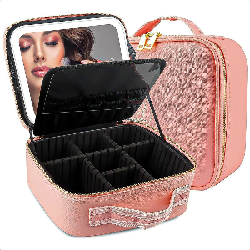 Cosmetiquero Con Espejo Organizador Led Cosmeticos Maleta Cosmetiquero Viaje Cuero Pu Impermeable Cajas Organizadoras Para Cosmeticos Mango Ergonomico Maletas De Cosmeticos Rosa Okshop