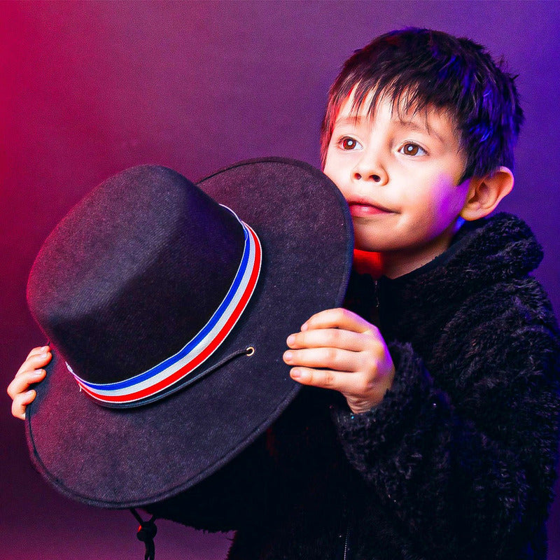 DESCRIPCION DEL PRODUCTO SOMBRERO HUASO CHILE El sombrero huaso elegante para adultos es un accesorio tradicional y distintivo que agrega un toque de autenticidad y estilo a las celebraciones de las Fiestas Patrias en Chile El sombrero huaso es un elemento icónico de la cultura chilena y se asocia comúnmente con la vestimenta típica de los huasos, los vaqueros chilenos. Su diseño incluye una ala ancha que protege del sol y detalles como cintas y adornos que aportan elegancia y estilo al atuendo. El traje típico de huaso para niños es una vestimenta tradicional chilena que se usa con orgullo durante las celebraciones de Fiestas Patrias en Chile. Este traje es una representación de la cultura y las raíces rurales del país y está lleno de historia y significado. CONTENIDO DE LA COMPRA X4 SOMBRERO HUASO CHILE