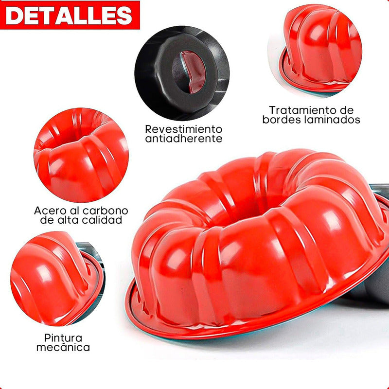 DESCRIPCION DEL PRODUCTO MOLDE PARA TORTA HUECO Moldes antiadherentes para tartas grandes, Diseño de gran capacidad, perfecto para uso doméstico y comercial. METAL DE CALIDAD PESADA, Este molde de metal para hornear está hecho de acero de calibre pesado. Este metal confiable no se dobla ni se deforma y tiene una alta capacidad de peso. Es resistente a la corrosión, apto para horno hasta 445 F°, y se puede utilizar en congeladores, refrigeradores y lavavajillas Recubrimiento antiadherente, superficie antiadherente que ayuda a garantizar una fácil liberación de alimentos con cero residuos sobrantes. El material resistente de los utensilios para hornear dispersa el peso y el calor uniformemente durante todo el proceso de horneado para recetas perfectamente hechas que no se atascarán ni se apelmazarán. Uso versátil, esta bandeja para hornear comercial funciona para la mayoría de los usos de horneado estándar y cabe en un horno residencial convencional. También son apilables, por lo que puedes guardarlos fácilmente en tu despensa, armario, armario o donde otro espacio sea limitado. Diseño único, el molde para pasteles tiene una forma clásica que es perfecta para ocasiones especiales o todos los días. El tamaño versátil, la forma y los detalles nítidos de esta sartén funcionan bien con las mezclas y recetas actuales CONTENIDO DE LA COMPRA X1 MOLDE PARA TORTA HUECO