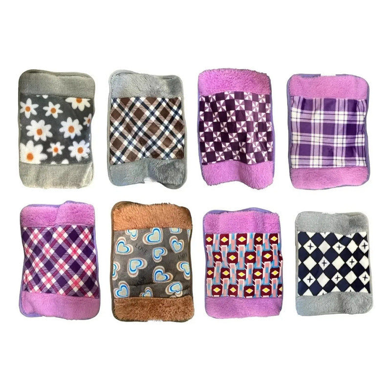 GUATERO ELÉCTRICO. - Material: terciopelo de cristal + PVC - Tamaño: aprox. 26x19cm. - Tensión nominal: 220V. - Potencia nominal: 500W. - Tiempo de uso: 4-10 horas. - La bolsa de agua caliente con patrones lindos puede calentar las manos, la cintura o el estómago. - Mantente caliente en el frío invierno. - Control automático de temperatura para evitar el sobrecalentamiento. - Seguro a prueba de exposiciones, portátil reutilizable, muy bonito. Puede poner dos manos en el. - SE ENVIA MODELO AL AZAR. Modo de uso: 1) Llene el guatero utilizando el embudo transparente, coloque el tapon. 2) Utilice de 800ml a 1 litro de agua, Colóquela tratando de no mojar el orificio de entrada. 3) Antes de encenderlo, verifique que esté seco, de no ser así, esperar a que se seque. 4) Una vez seco conectar a la toma corriente mediante el cargador negro. 5) Se encenderá la luz roja, la cual se apagará al calentar el agua. 6) Proceda a desconectarlo y así estará listo para su uso. (La publicación tiene un video que puede detallar en versión web). El paquete incluye: - 2 Unidad por bolsa de agua caliente - 2 cable de alimentación - 2 Unidad por embudo