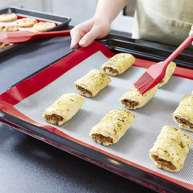 DESCRIPCIÓN DEL PRODUCTO Descubre la manera más fácil y eficiente de hornear con nuestra lámina antiadherente. Diseñada para simplificar tu experiencia de repostería y cocina, esta lámina evita eficazmente que tus alimentos se adhieran a la bandeja del horno, garantizando que tus galletas, pizzas, panes y otras delicias se desmolden perfectamente sin romperse ni dejar residuos. Fabricada en silicona de alta calidad y grado alimenticio, es una solución segura, durable y extremadamente flexible. Su superficie antiadherente no solo protege tus preparaciones, sino que también elimina la necesidad de usar papel manteca o engrasar las bandejas, haciendo tu proceso de cocina más limpio, económico y ecológico. Resiste altas temperaturas, lo que la hace versátil y confiable para todo tipo de horneados. Además, es fácil de limpiar ya que es apta para lavavajillas, permitiéndote disfrutar de tus creaciones culinarias sin preocupaciones. CARACTERÍSTICAS PRINCIPALES: Dimensiones: 40 cm de largo x 30 cm de ancho (forma rectangular) Material: Silicona Temperatura de uso: Soporta desde 0°C hasta 220°C Propiedad antiadherente: Sí Apta para lavavajillas: Sí CONTENIDO DE LA COMPRA: X2 Lámina antiadherente para horno.