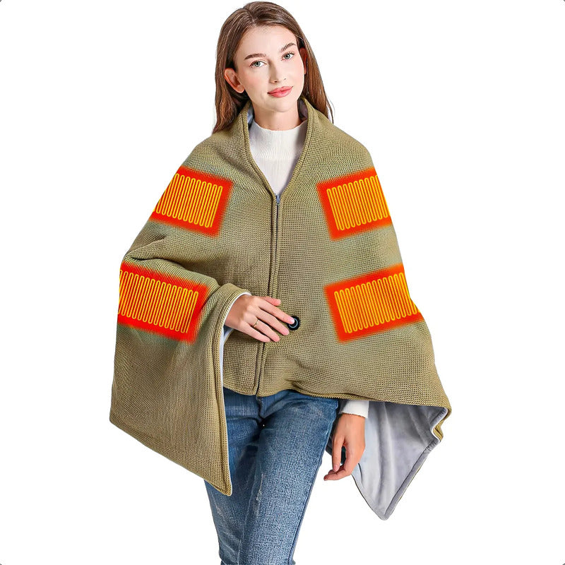 DESCRIPCION DEL PRODUCTO MANTA CALENTADORA PORTATIL Tela de lujo, hecha de una combinación de tela de punto verde y terciopelo de cristal gris ultrasuave, esta manta térmica funciona con pilas ofrece una comodidad y durabilidad excepcionales. Equipado con 8 elementos de calefacción de primera calidad, ofrece calidez relajante incluso en los días más fríos de invierno. Libertad inalámbrica, experimenta la comodidad de la verdadera portabilidad con el diseño inalámbrico de esta manta calentada por batería. Calidez instantánea y comodidad personalizada, disfruta de un calentamiento rápido en solo 3 segundos, con tres ajustes de temperatura ajustables: 113.0 °F, 131.0 °F y 149.0 °F (± 41.0 °F). Encuentra fácilmente tu nivel perfecto de calidez con solo presionar un botón. Versatilidad multiescena, ya sea que estés relajándote en casa o aventurándote al aire libre, esta manta térmica se adapta a tu estilo de vida. Ideal para acurrucarse en la cama, sofá o silla de oficina, también es perfecto para acampar, viajar o mantener el calor en tu automóvil. Diseñado para aportar calidez y comodidad CONTENIDO DE LA COMPRA X1 MANTA CALENTADORA PORTATIL