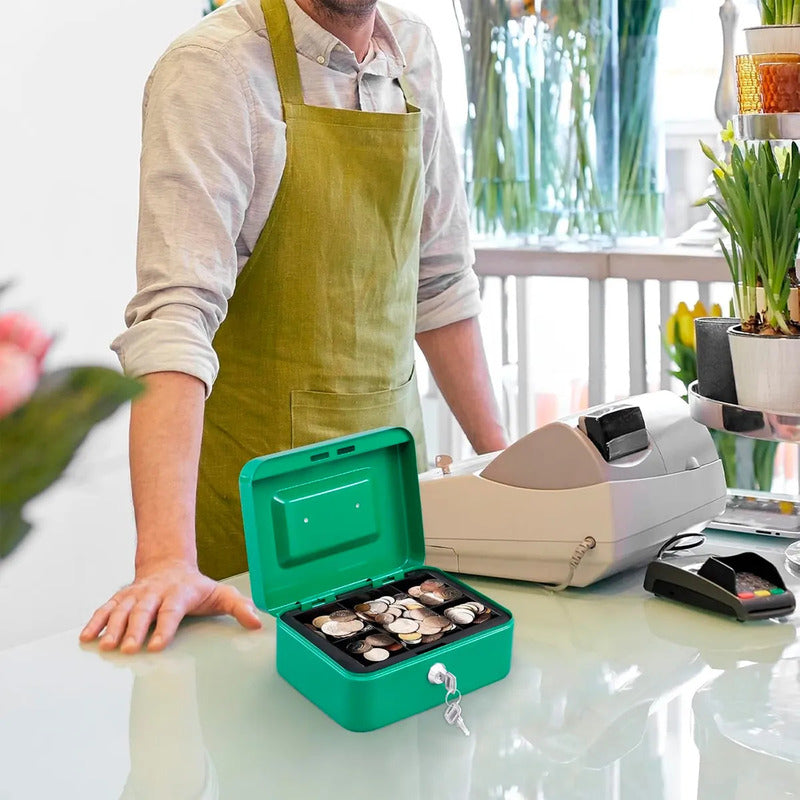 DESCRIPCION DEL PRODUCTO CAJA DE SEGURIDAD METALICA Nuestra caja de seguridad efectivo está hecha de material metálico, estructura estable, fuerte y duradera, no es fácil de romper. Puede proteger sus pertenencias de daños o pérdidas y garantizar la seguridad de su dinero La caja de efectivo es compacta, ligera y fácil de transportar. Perfecto para usar en el hogar y la oficina, y es portátil en los viajes La bandeja extraíble está diseñada con 5 compartimentos para joyas, monedas, llaves y otros objetos pequeños. También hay espacio interior debajo para guardar dinero en efectivo y otros objetos de valor La caja de seguridad para dinero tiene una fuerte cerradura mecánica con dos llaves, una llave para uso diario y la otra llave se puede utilizar como repuesto para asegurar la hucha La parte superior de la caja de seguridad efectivo está diseñada con un asa antideslizante de fácil agarre, cómoda de sujetar y permite un fácil uso sobre la marcha, perfectas para recaudar fondos, donaciones de fundaciones y otros eventos. Color: Rojo CONTENIDO DE LA COMPRA X1 CAJA DE SEGURIDAD METALICA