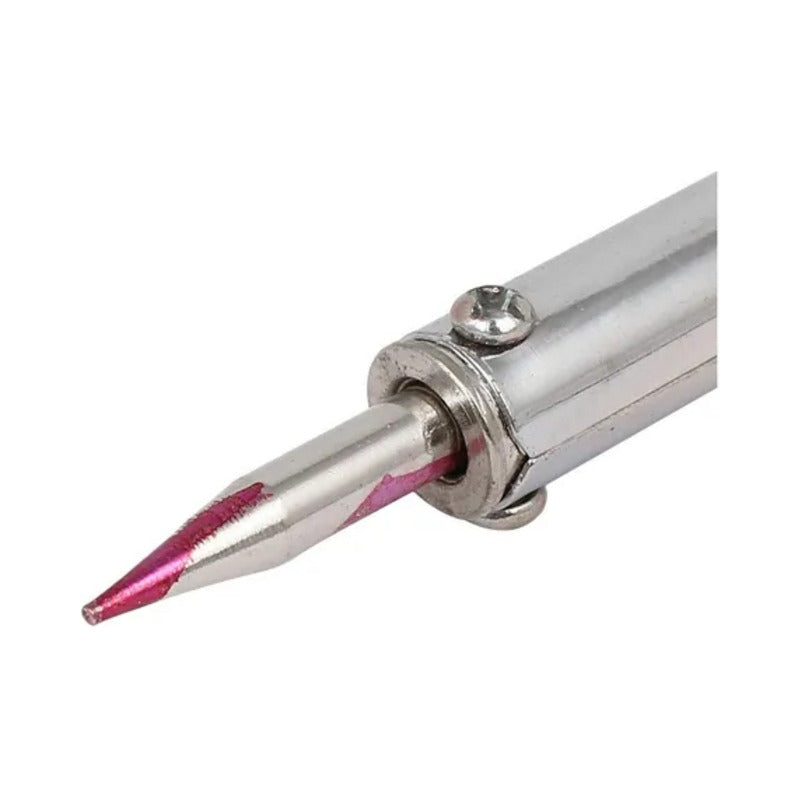 DESCRIPCIÓN DEL PRODUCTO: Cautín tipo lápiz de 60W, una herramienta práctica y esencial para realizar trabajos de soldadura de manera rápida y eficiente. Su diseño ligero, similar al de un lápiz, permite un manejo cómodo y un control preciso, ideal para trabajos delicados y de corta duración en componentes electrónicos, reparación de circuitos, pequeños cables o incluso detalles en el automóvil. Es la solución perfecta para aficionados al bricolaje, hobbyistas o para aquellas reparaciones urgentes en el hogar. Su operación es sencilla y está lista para usar casi de inmediato, alcanzando la temperatura de trabajo necesaria en poco tiempo gracias a su potencia optimizada. CARACTERÍSTICAS DEL PRODUCTO Tipo de Herramienta: Cautín soldador tipo lápiz. Potencia: 60 W, ofrece un calentamiento rápido para soldaduras eficaces. Voltaje: 220 V, diseñado para conectarse a la red eléctrica doméstica estándar. Fase Eléctrica: Monofásica. Peso: Extremadamente ligero, con solo 110 gramos, lo que minimiza la fatiga durante su uso. CONTENIDO DE LA COMPRA 01 Cautín soldador tipo lápiz.