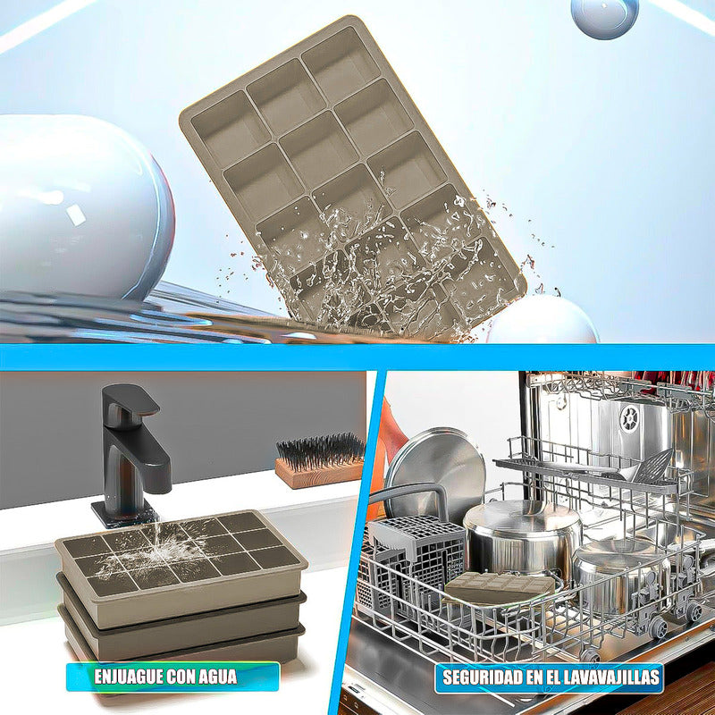 DESCRIPCION DEL PRODUCTO Molde hielo de silicona de 15 cubos Hecho 100% silicona de grado alimenticio para garantizar absoluta seguridad alimentaria. No tóxico, sin olor y sin BPA. el molde de hielo de silicona no se agrieta ni se rompen como otros moldes o bandejas de plástico. Son fáciles de llenar, fáciles de usar, fáciles de limpiar y aptas para lavavajillas. La parte inferior de silicona suave te ayuda a liberarlos fácilmente, simplemente empuja la parte inferior de la bandeja y tu hielo se deslizará hacia fuera. En verano es muy adecuado para uso familiar, fiestas, bares y restaurantes. También es ideal para la fabricación de chocolate, caramelo y caramelos duros. - Material: Silicona - Medidas: 18.5x 11.5 x 3cm - Antiadherente - Incluye tapa - Apto para lavavajillas - Durable, flexible y practico CONTENIDO DE LA COMPRA X2 Molde hielo de silicona de 15 cubos SOMOS OKSHOP